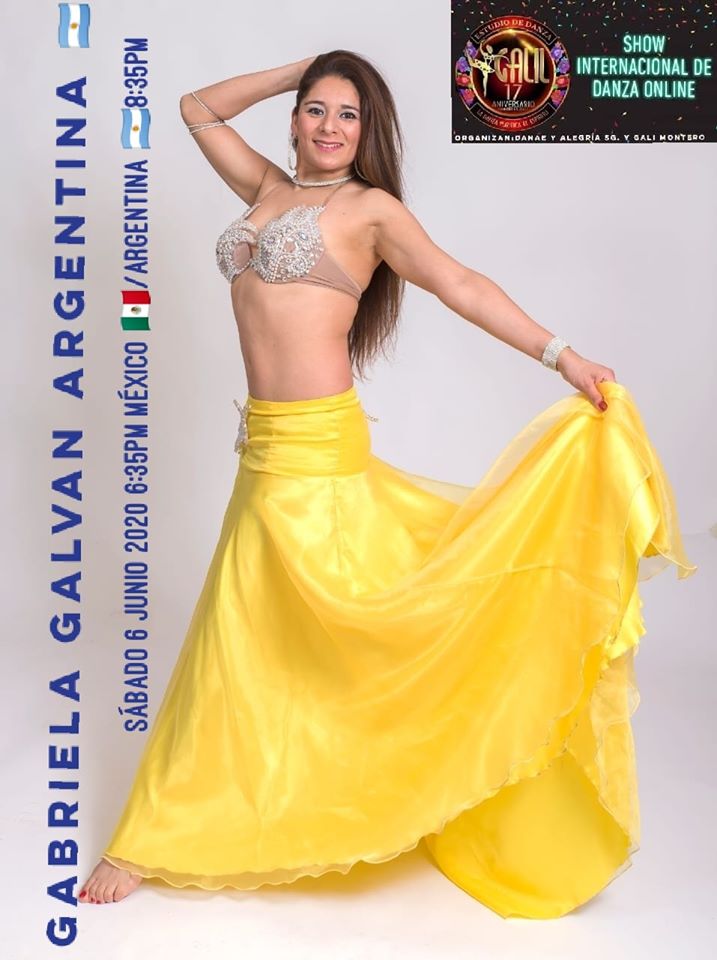 El área municipal de Cultura y Educación informó que la talentosa bailarina bellvillense Gabriela Galván, participará el sábado 6 de junio a las 20:35, hora argentina, del 17° encuentro de Danza Árabes “Galil Show Internacional de Danza Online” desde México.