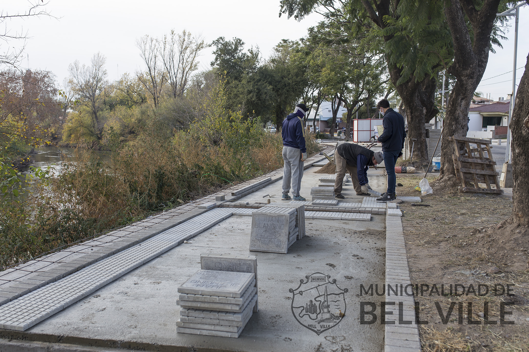 Se sigue trabajando en el Paseo Tucumán, centralizándose la tarea en la obra de la vereda del lado Norte, es decir la correspondiente a la barranca del río Ctalamochita, cubriéndose una superficie aproximada a los 200 m2. Se trata de la base o carpeta sobre la que ya se están asentando los mosaicos.