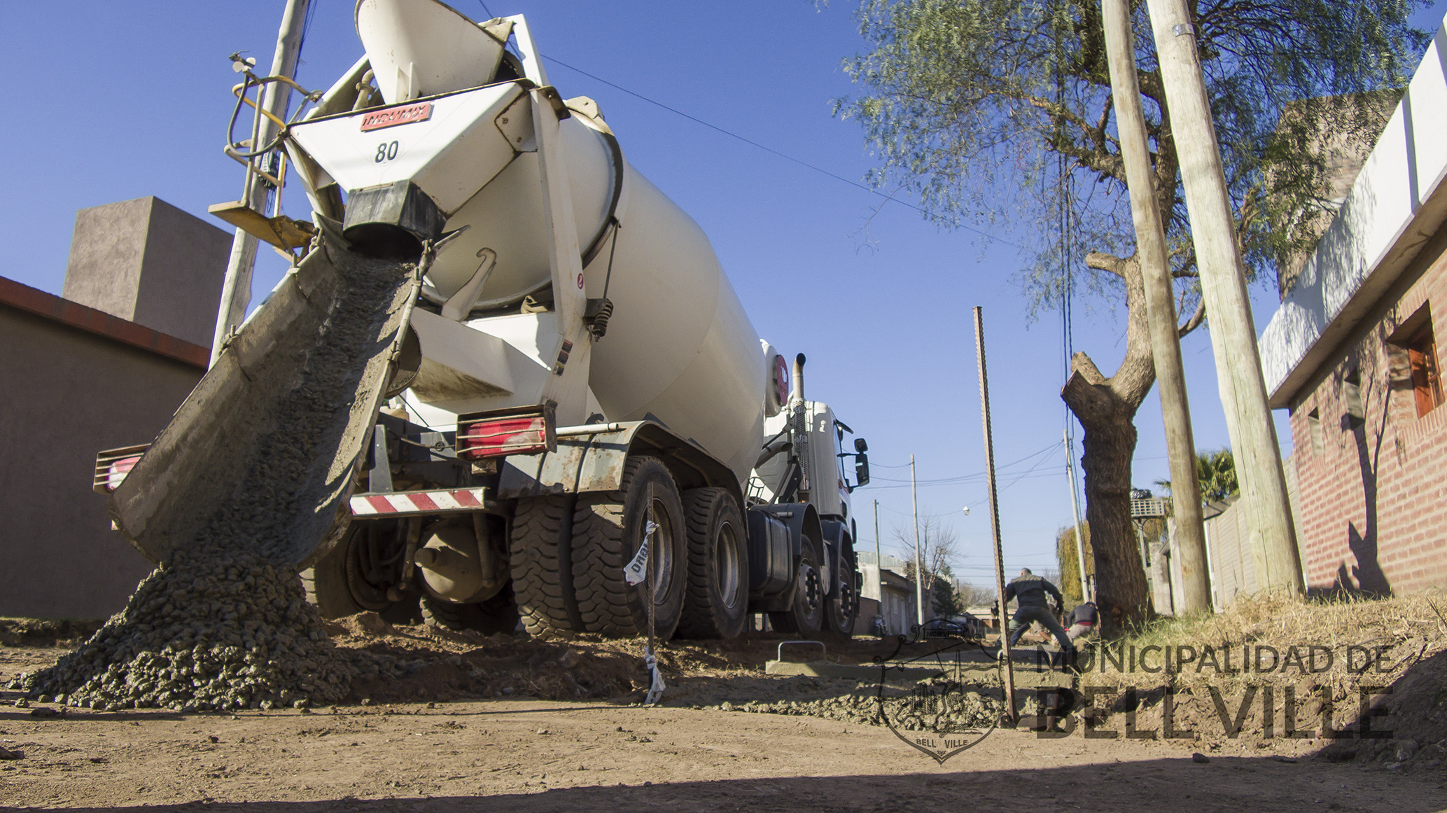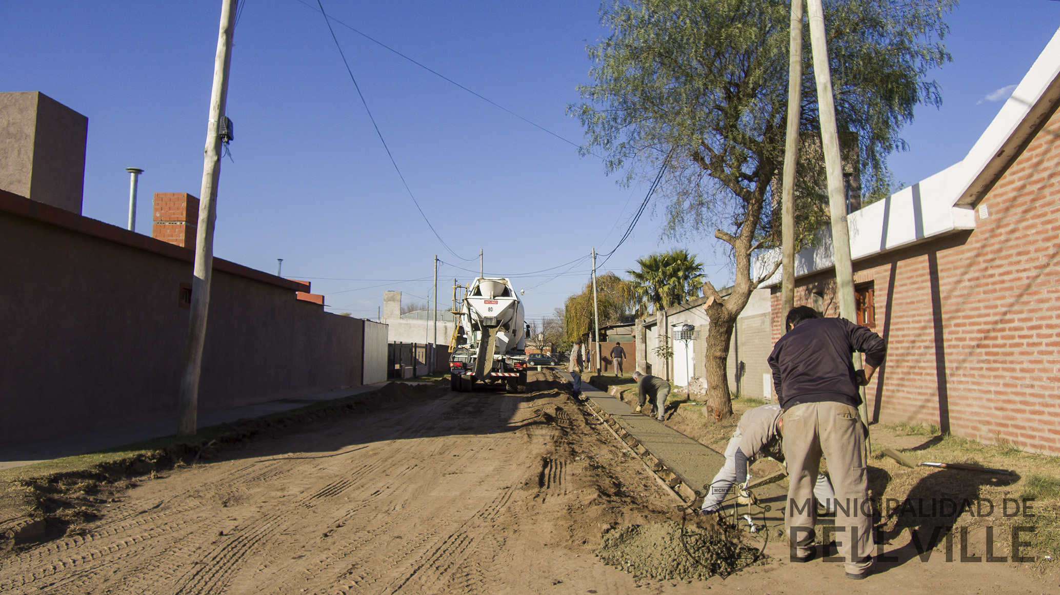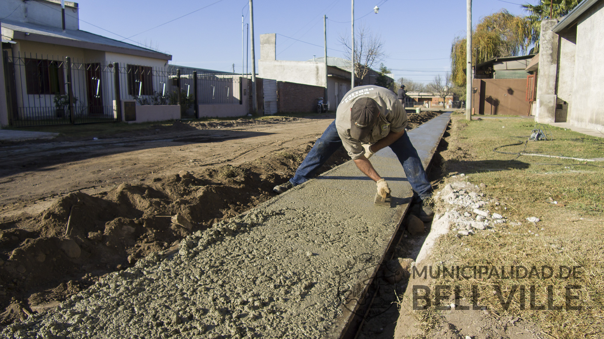Quedó concluida hoy una de las dos manos de la construcción de cordón cuneta con hormigón en Pasaje Rojas, entre calle Río Negro y bulevar Eva Perón.