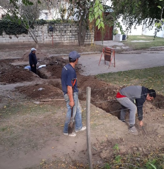 Se está llevando a cabo la obra de cloacas y su conexión a la red de calle Tucumán, de los vestuarios recientemente construidos en la pista municipal de atletismo.