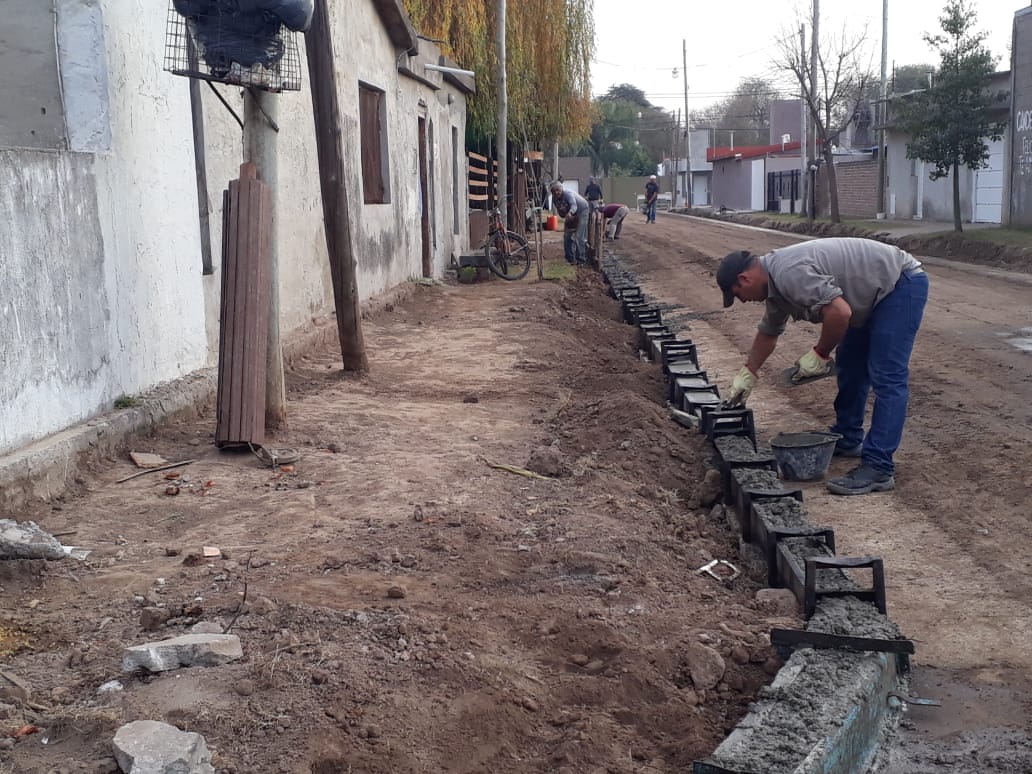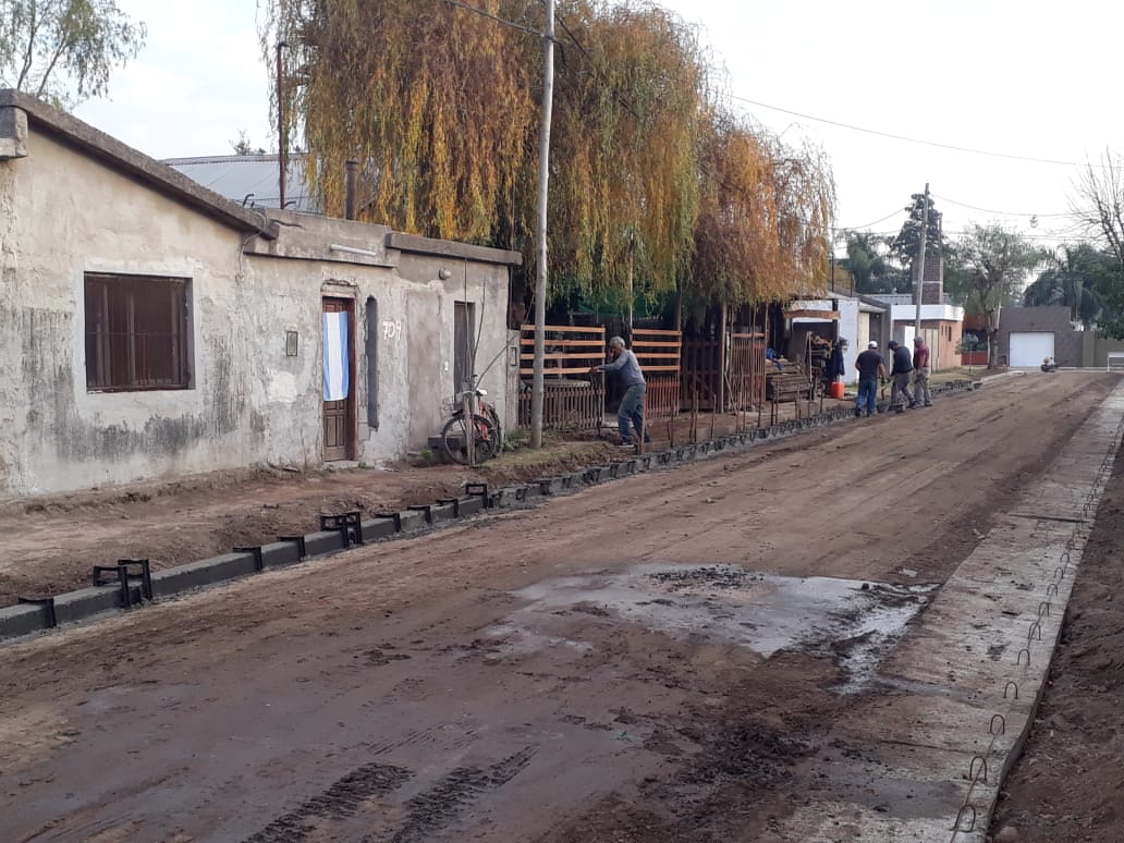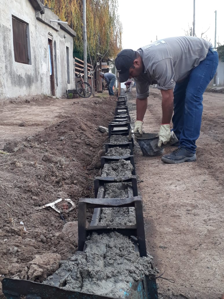 Se continúa con la construcción de cordón cuneta de hormigón en Pasaje Rojas, entre bulevar Eva Perón y calle Río Negro.