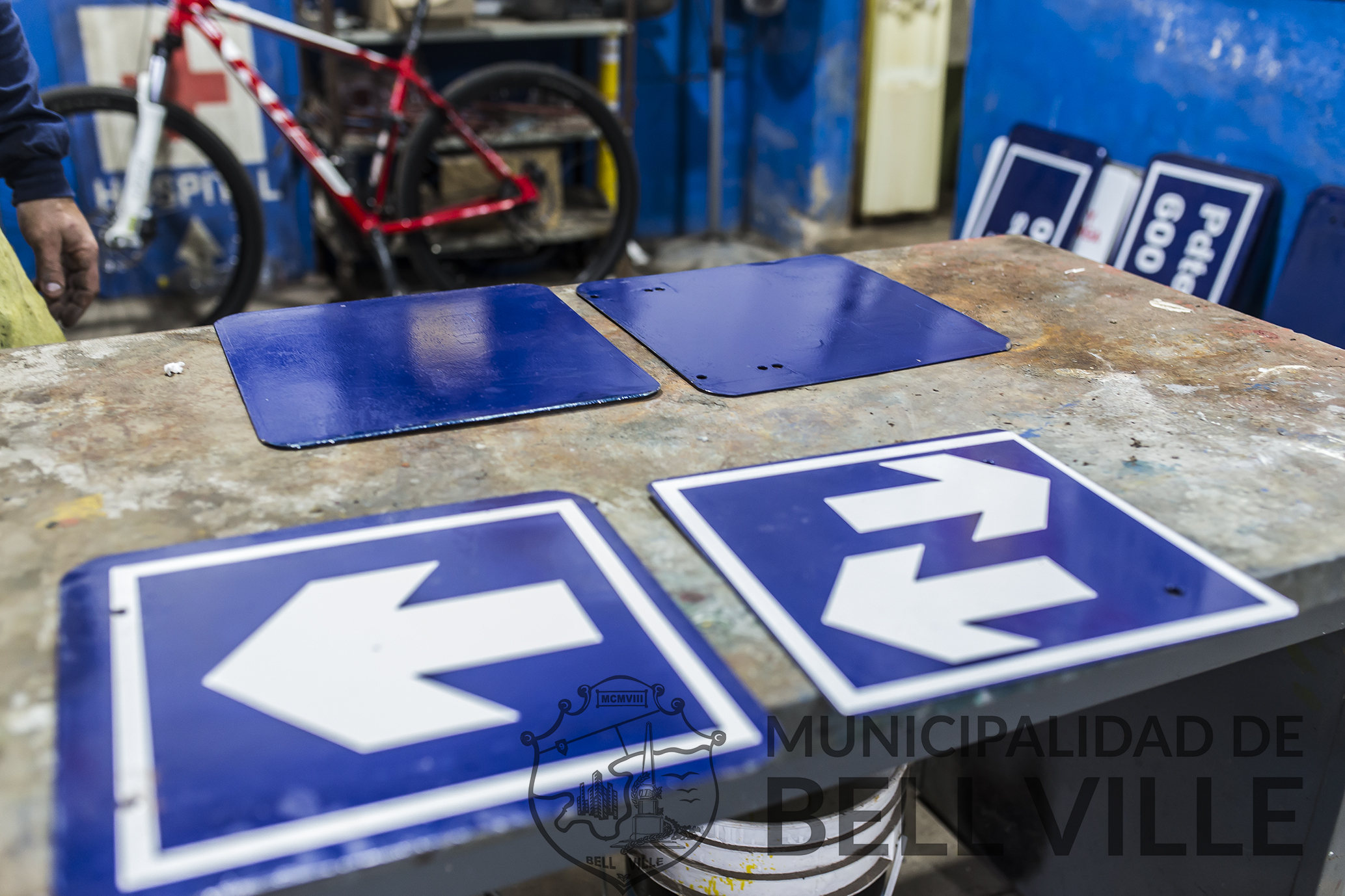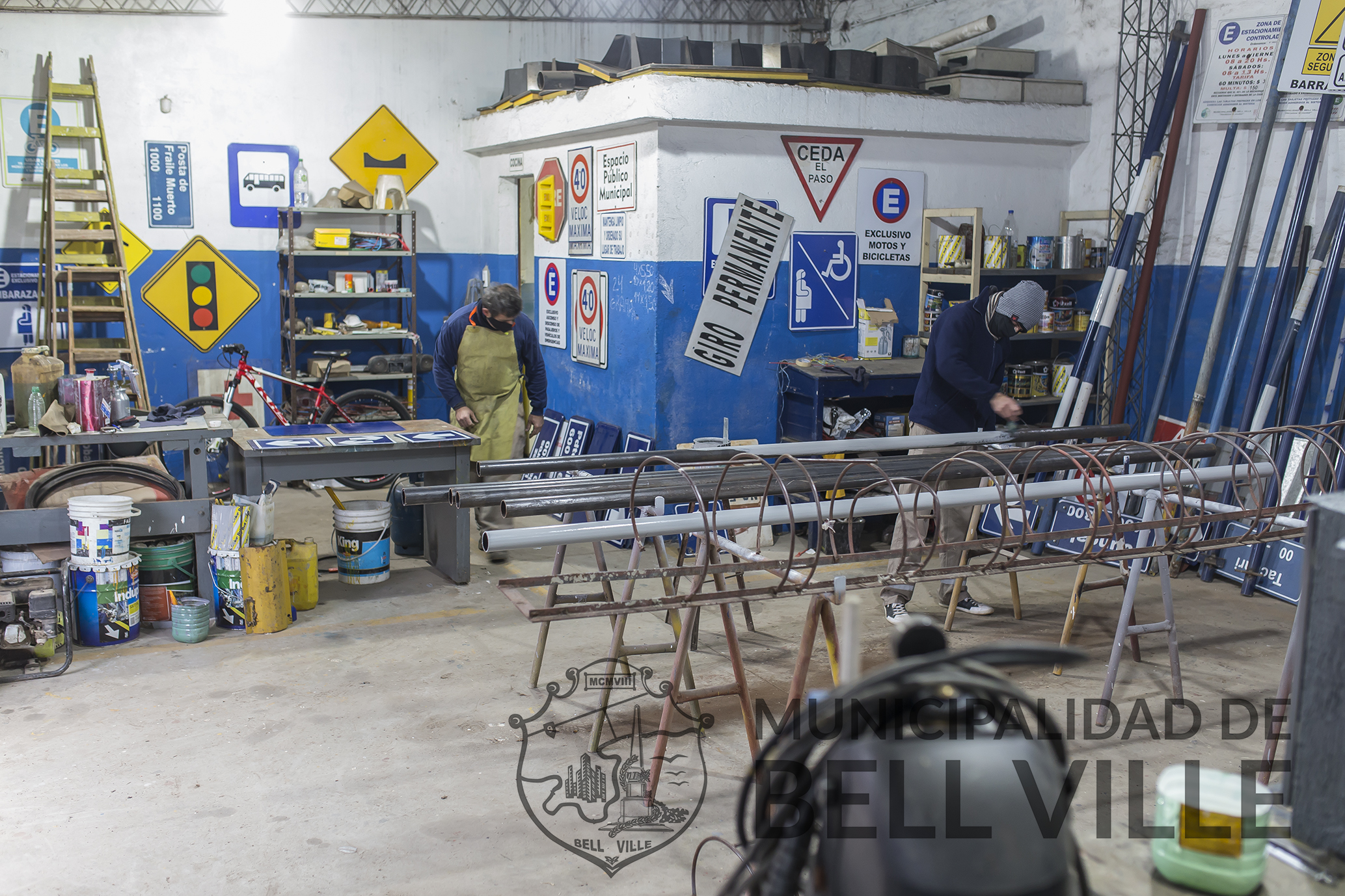 En el Taller Vial de la Municipalidad continúa el trabajo de confección y colocación de distintos elementos que contribuyen a la seguridad en el tránsito para conductores y peatones.