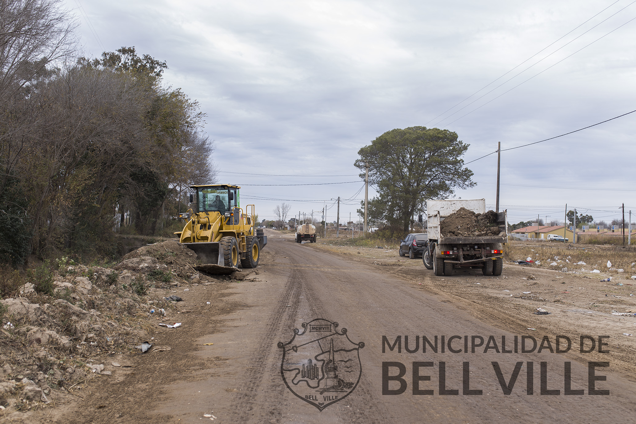 Están siendo removidos los montículos de basura y tierra extraídos por la limpieza del canal de desagüe paralelo a la calle Perito Moreno.