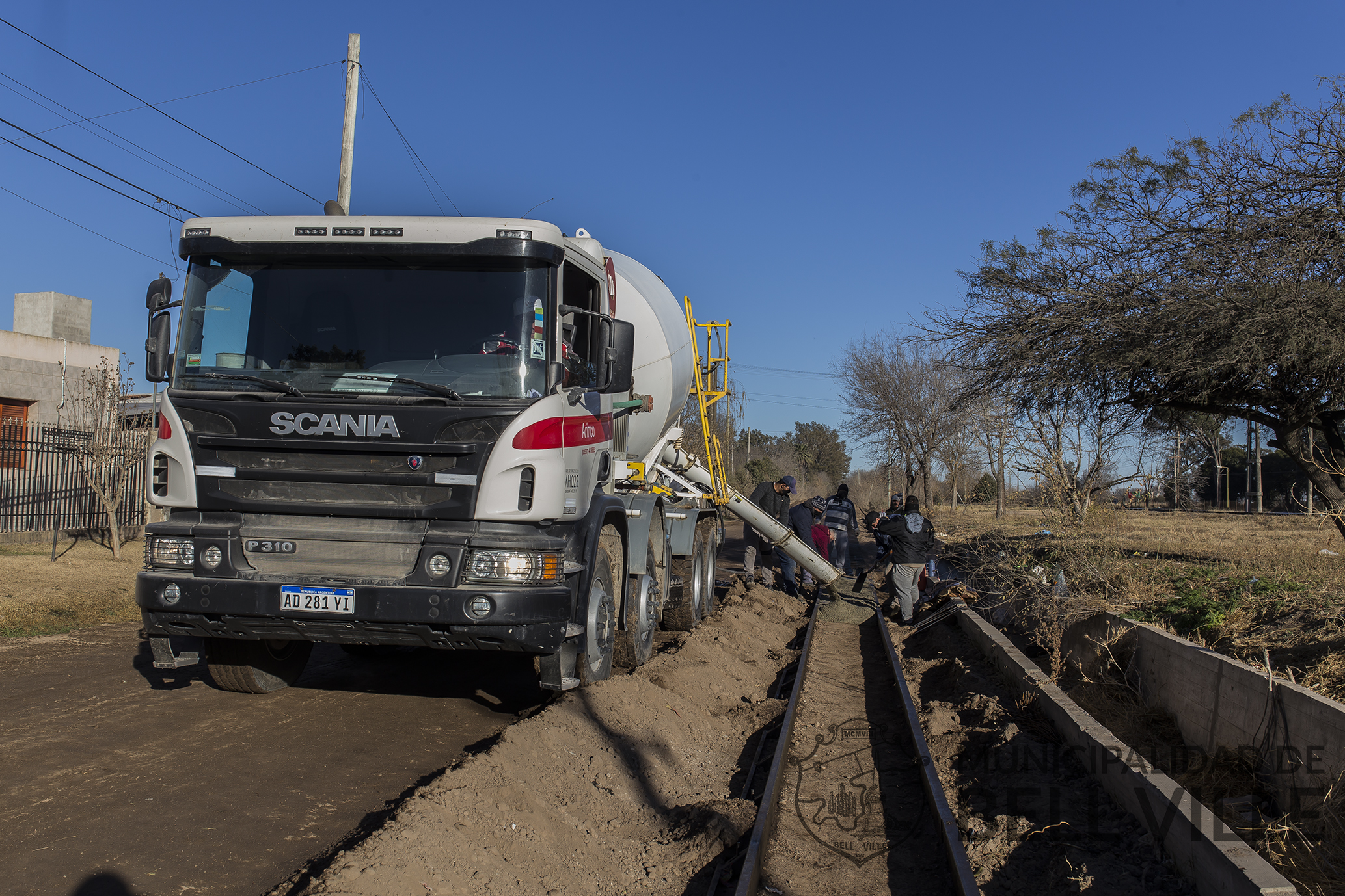 Comenzó el rellenado con hormigón del cordón cuneta que se está construyendo en Camino a Morrison.