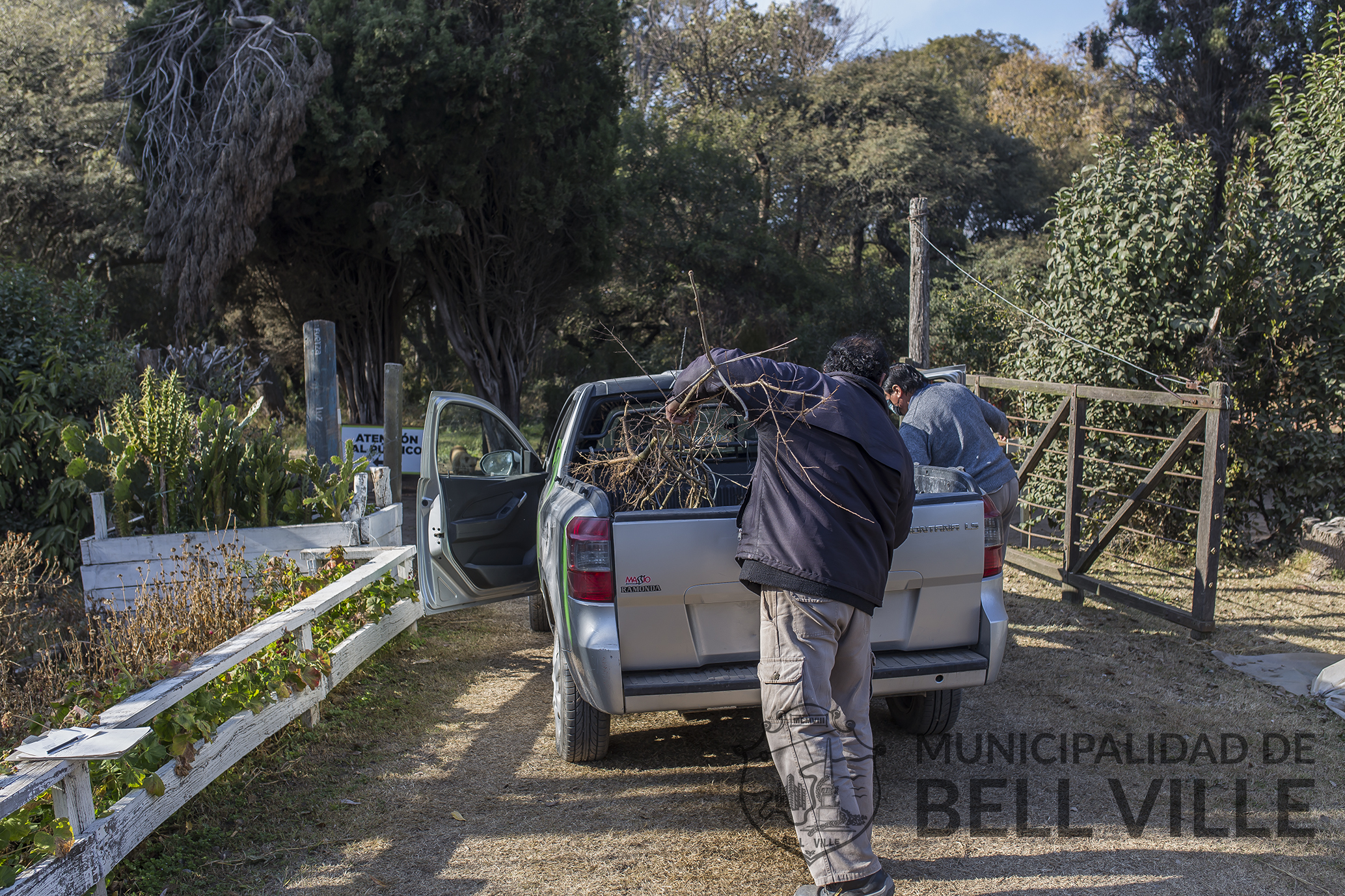 La tarea se hace en conjunto entre Bromatología, Saneamiento y Vivero Municipal. Los interesados deben comunicarse telefónicamente al Nº 410451 (Bromatología Municipal) en el horario de 06:00 a 20:00, de lunes a viernes y dar a conocer el domicilio y dimensiones aproximadas de vereda y frente de la edificación.