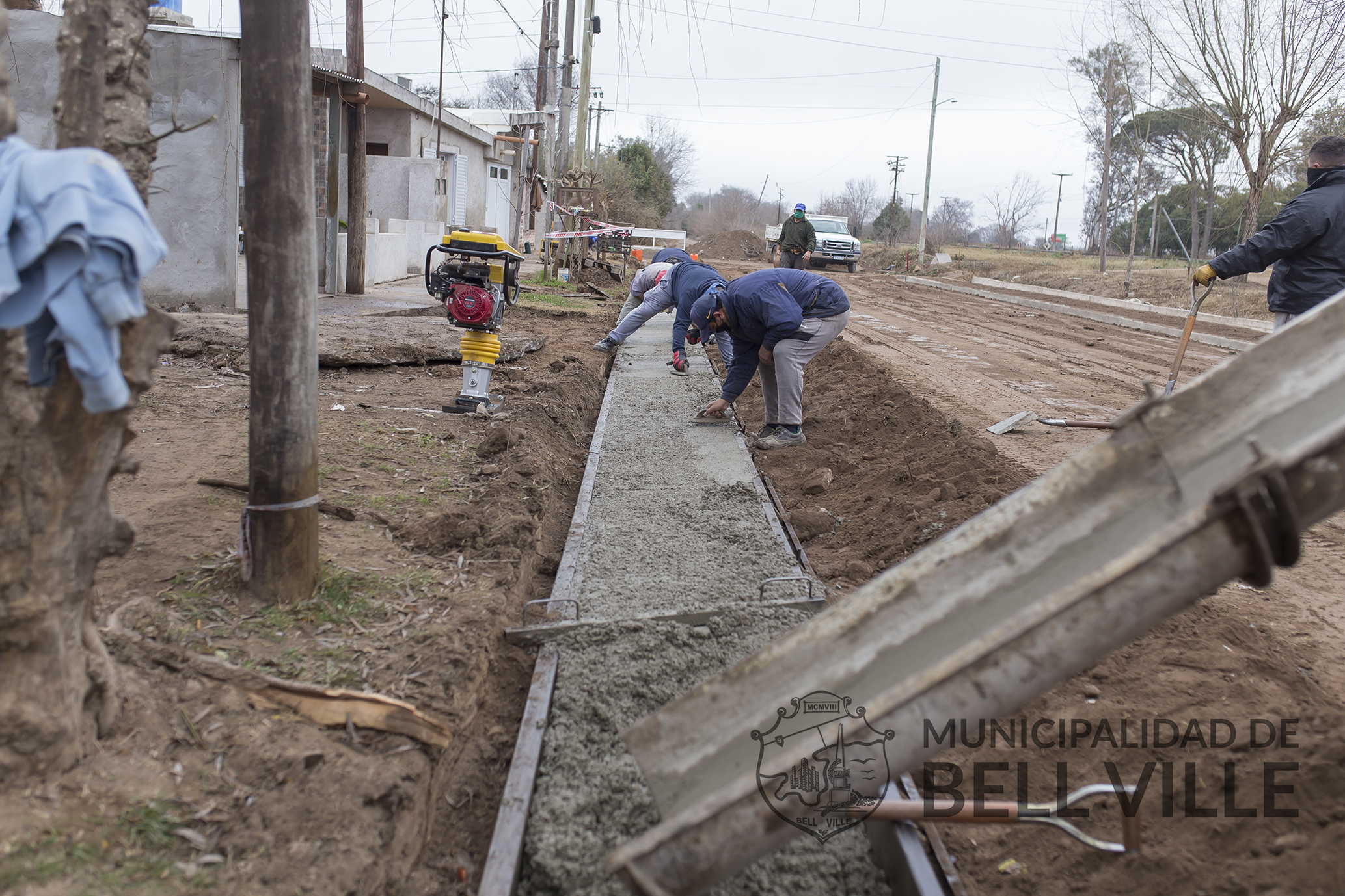 Prosigue el rellenado con hormigón de los moldes del futuro cordón cuneta en Camino a Morrison.