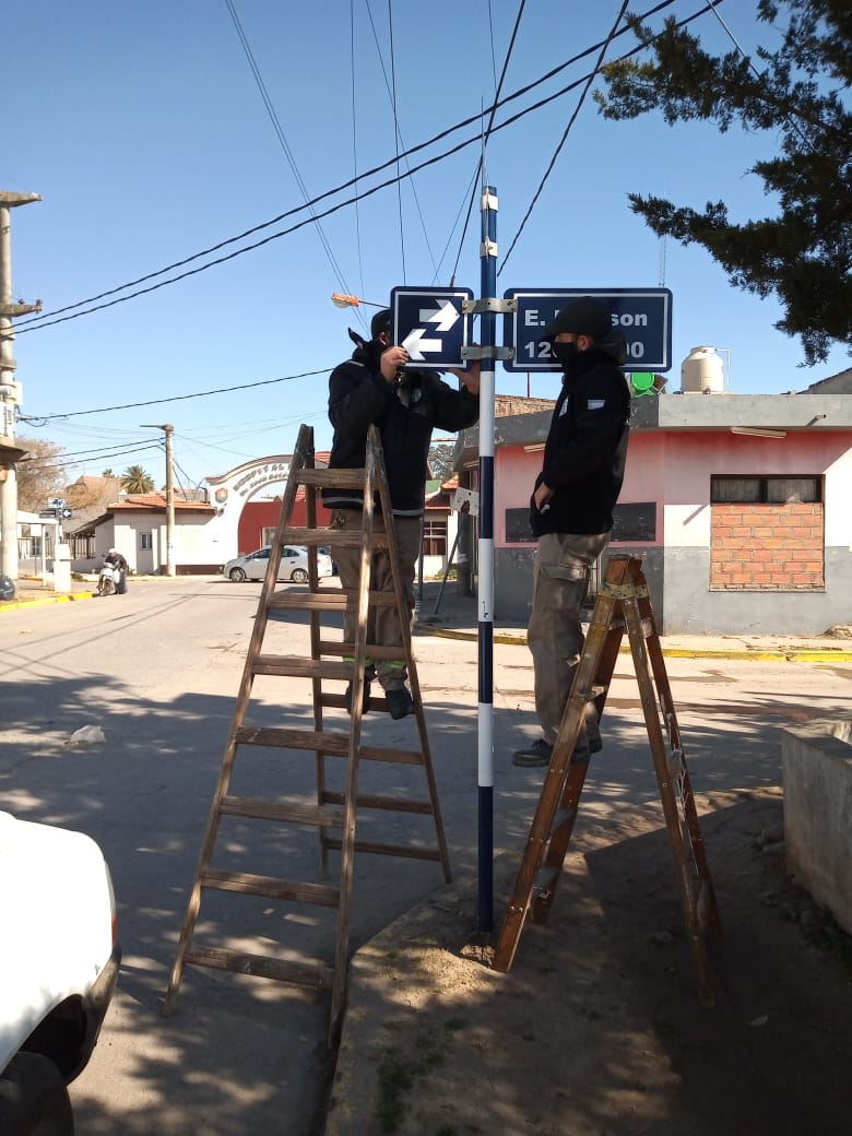 Colocan nomencladores en calle Gerónimo del Barco y otras señaléticas viales.