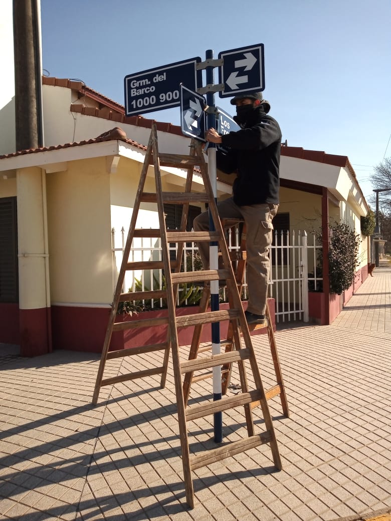 Personal de las áreas de Tránsito y Taller Vial de la Municipalidad está colocando los nomencladores en calle Gerónimo del Barco.