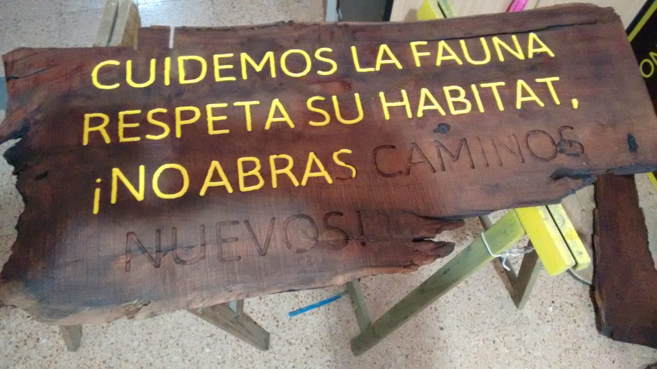 Se utilizaron herramientas (fresadora) adquiridas para ese fin y troncos de árboles muertos de la reserva natural, los que con el tiempo retornarán al ecosistema.