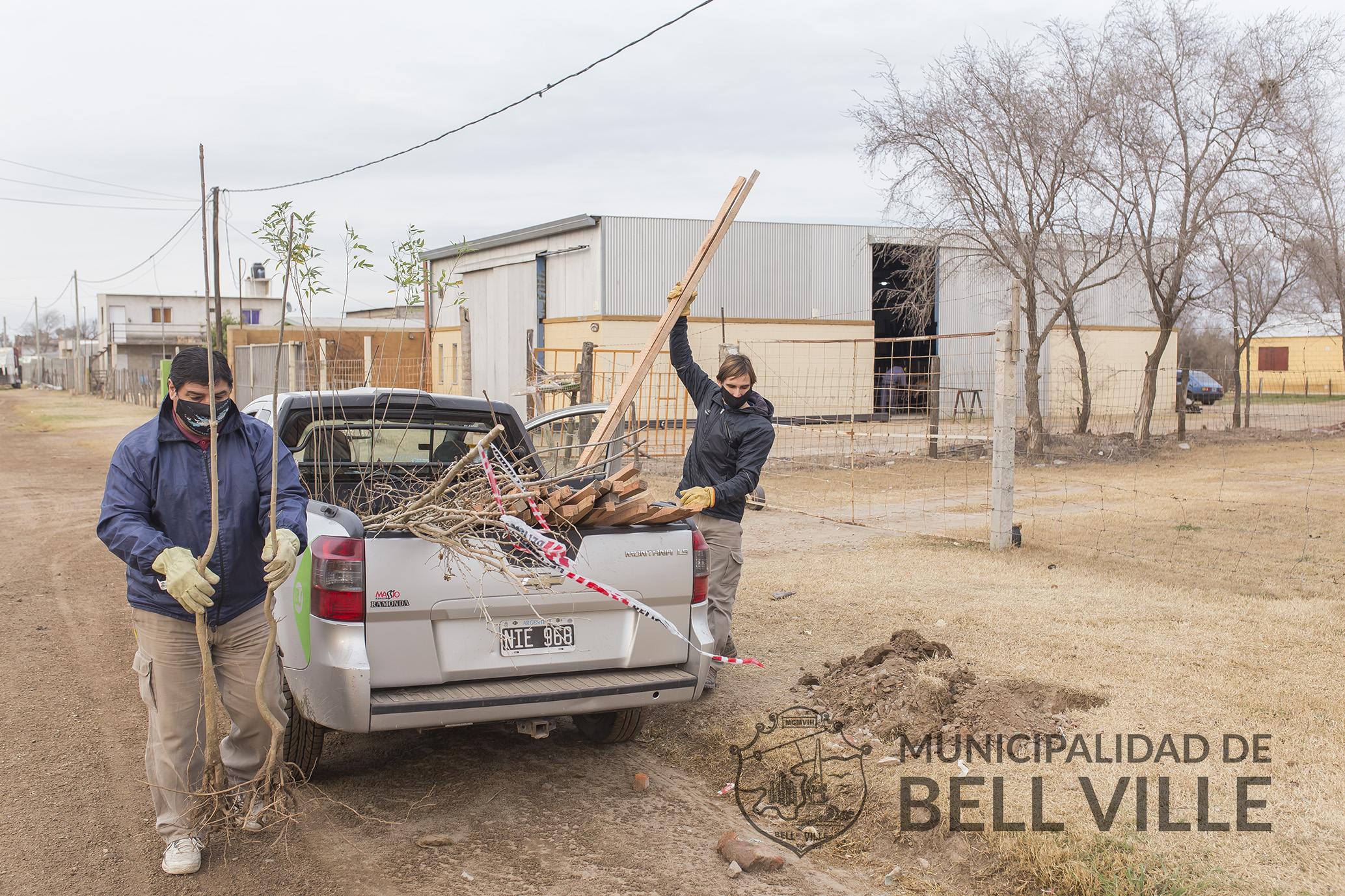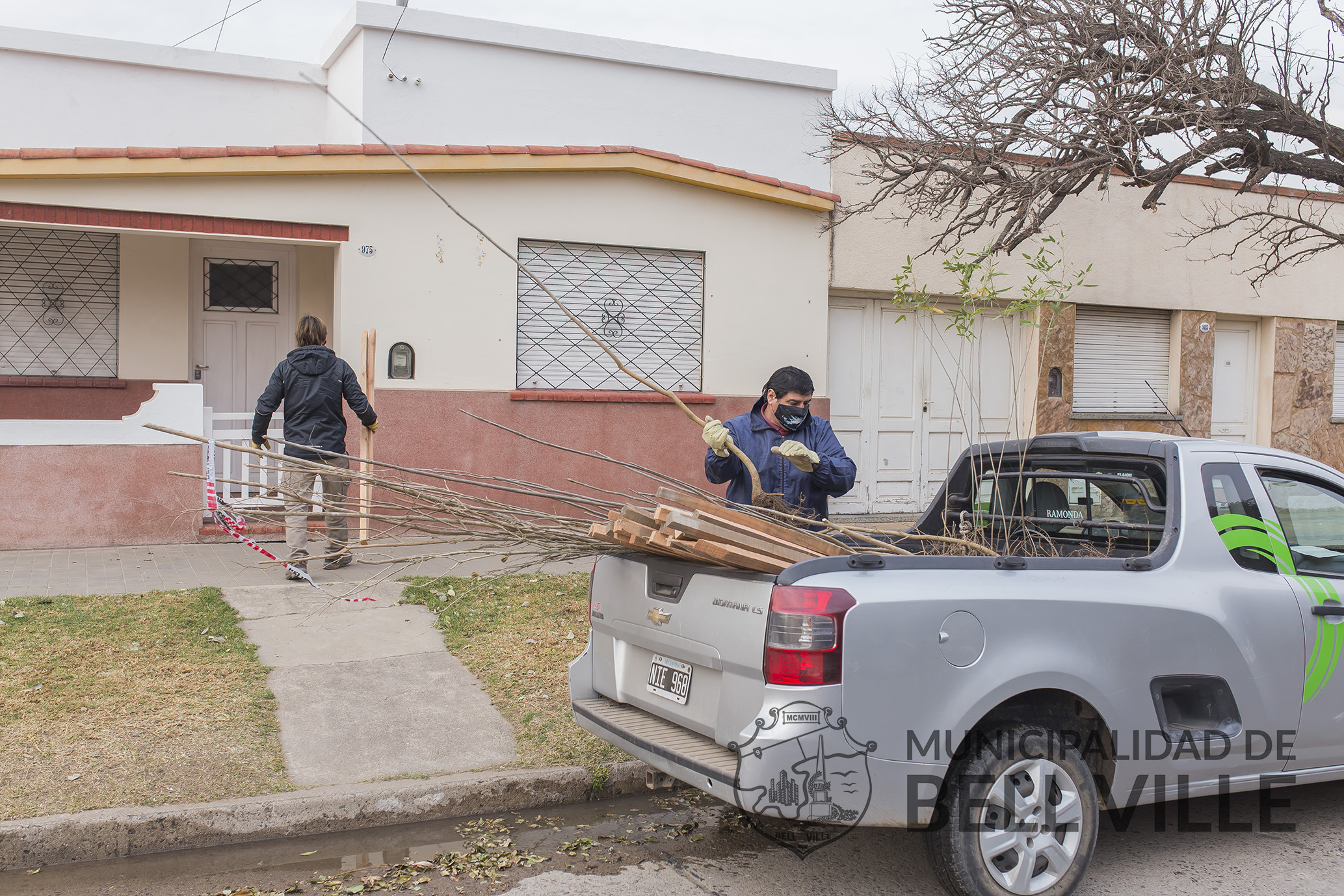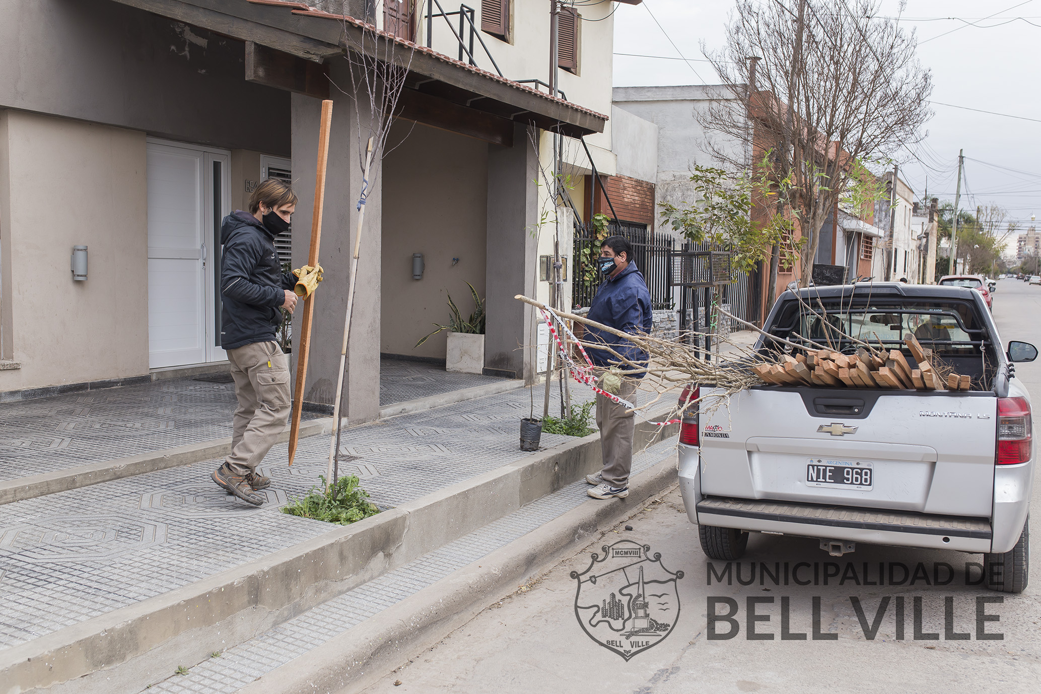 Desde hace menos de un mes, el Área de Bromatología y Saneamiento, junto al personal del Vivero Municipal, han adoptado la entrega gratuita y a domicilio de árboles, a raíz desnuda, para que los vecinos los planten en el frente de  sus viviendas.