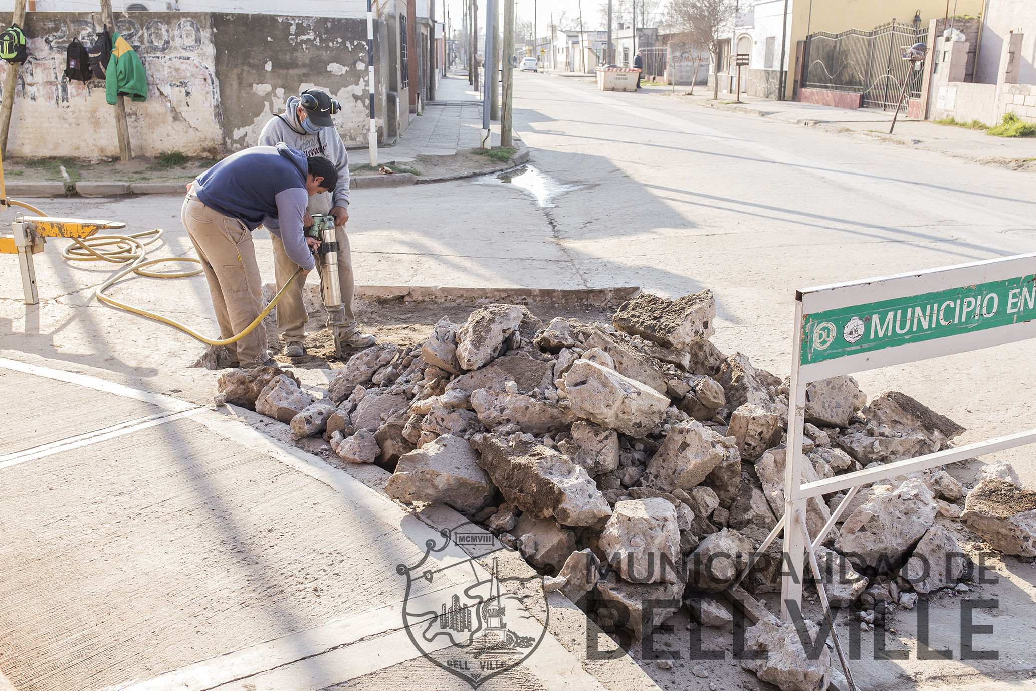 Por otra parte, en la continuidad de la obra de bacheo con hormigón, se trabaja en la remoción de un sector muy deteriorado de calle San Luis y pasaje Martín Fierro. La tarea también se cumple en San Luis y Rodríguez Peña.