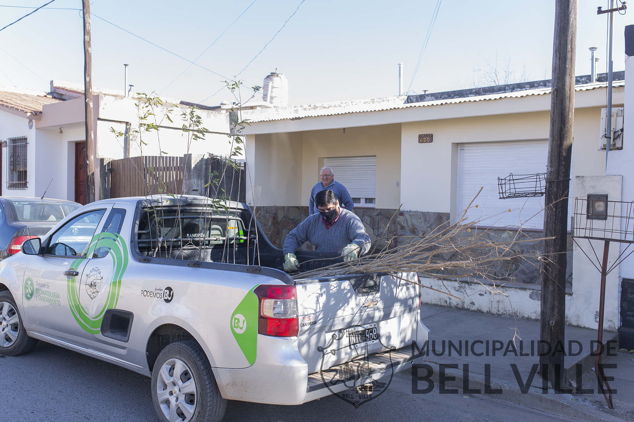 Como todos los viernes, hoy se distribuyeron los árboles a raíz desnuda que los vecinos solicitan telefónicamente al área de Bromatología y Saneamiento de la Municipalidad para ser plantados frente a sus viviendas.