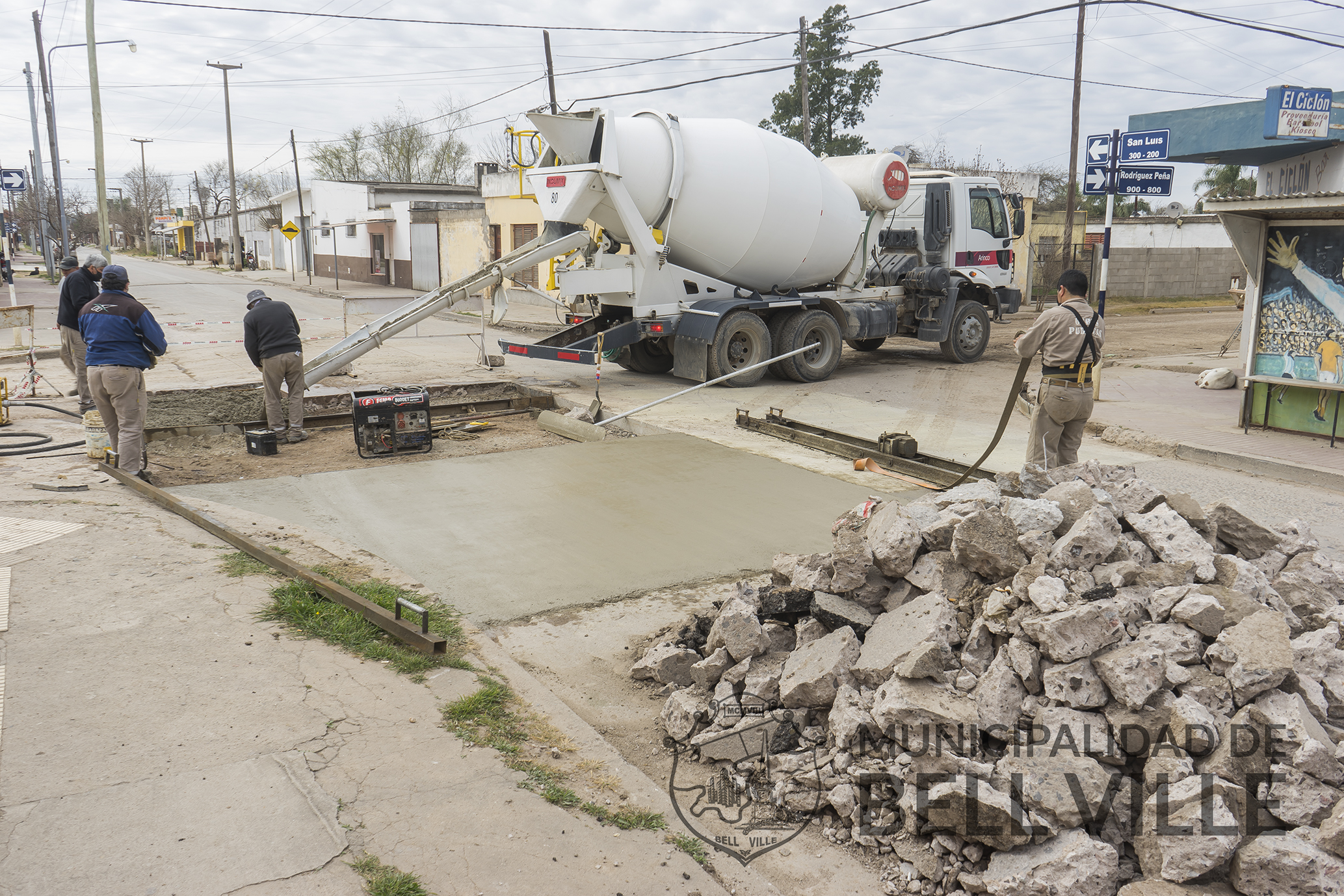 Removido el material deteriorado, se rellena con hormigón un importante paño en la esquina de calles San Luis y Rodríguez Peña. Tareas similares se cumplieron en otros sectores de la citada arteria.