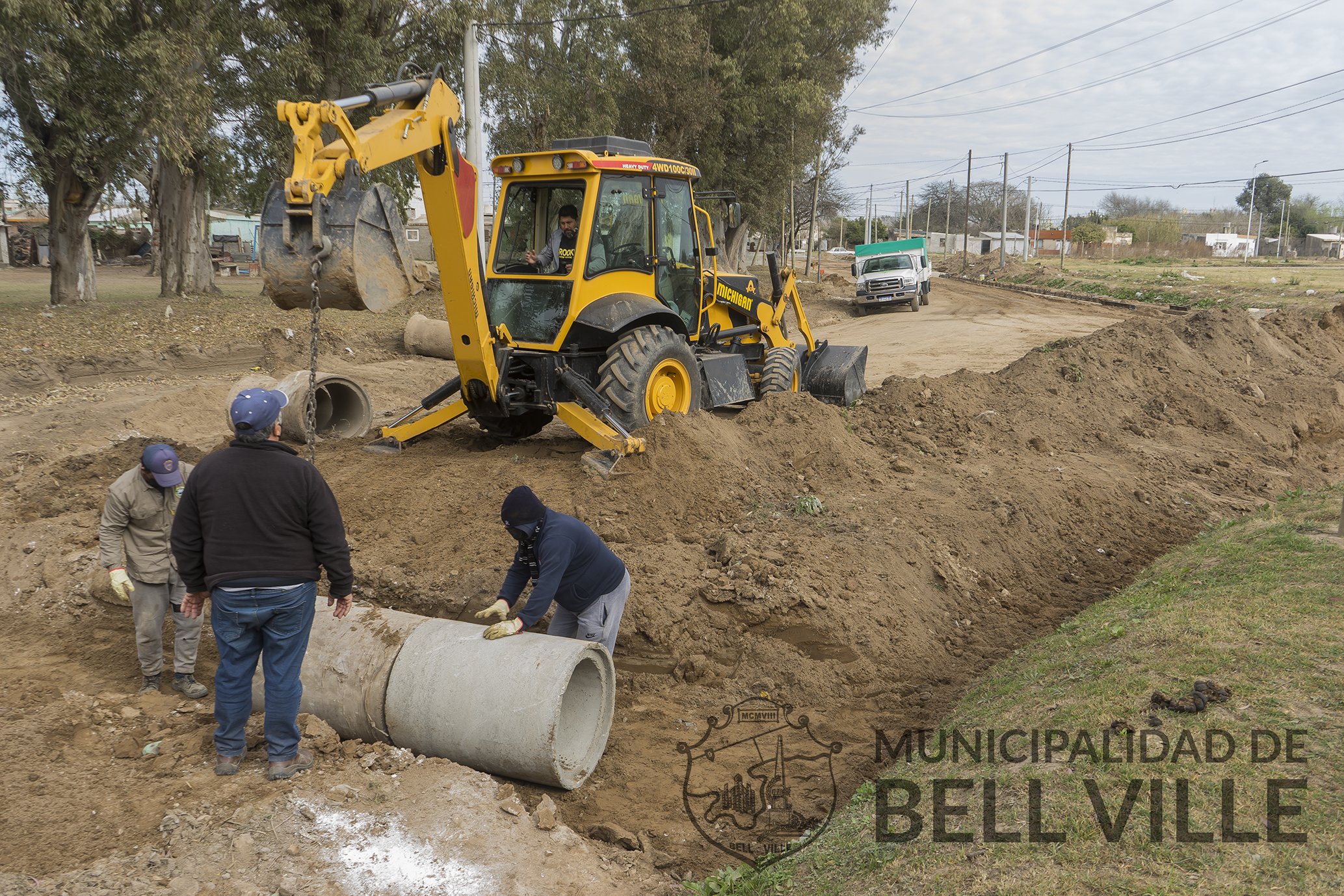 Paralelamente, se está procediendo al alcantarillado correspondiente para derivar el agua de lluvia al canal existente en Perito Moreno.