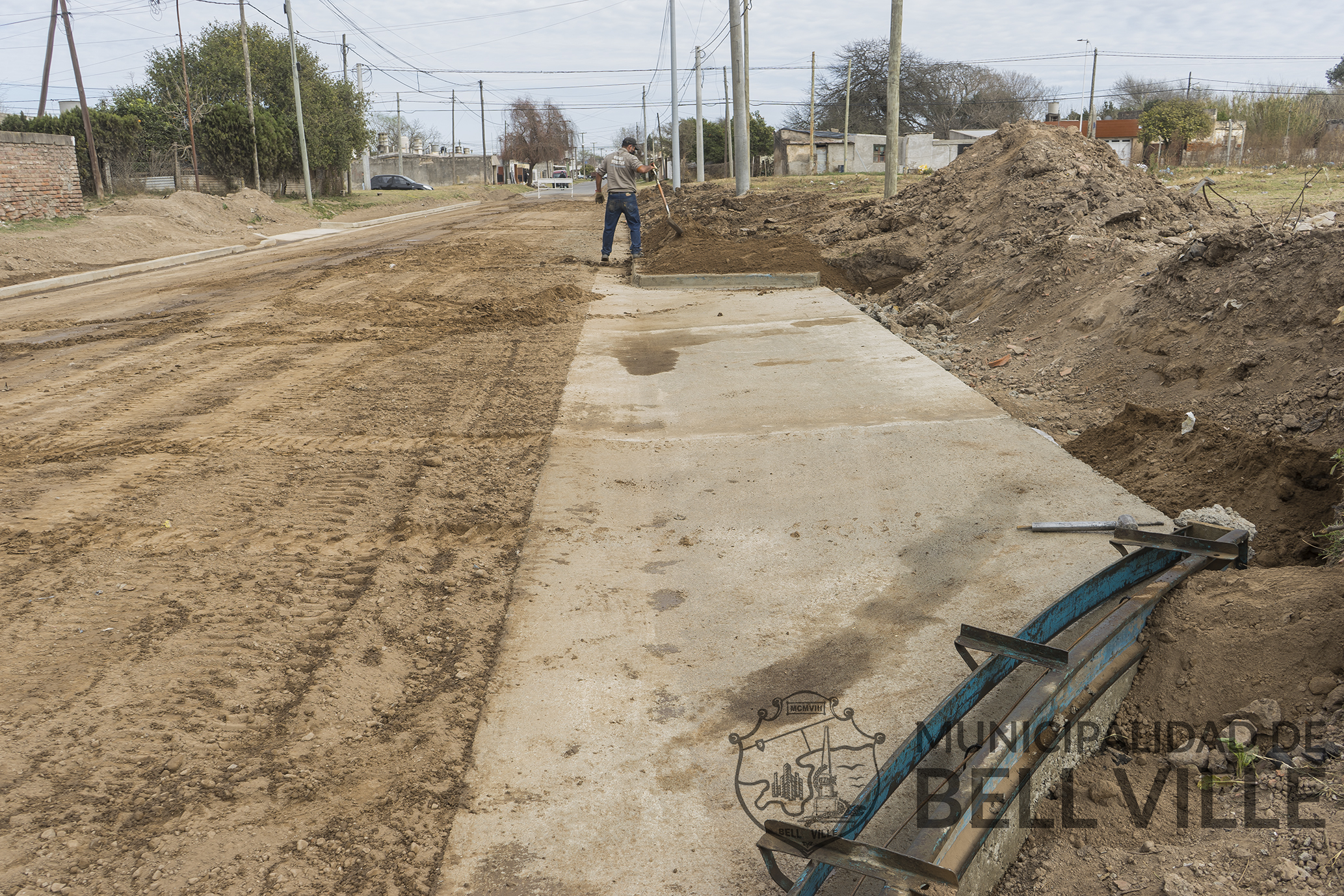 En el tramo de calle Brasil, entre Las Heras y Urquiza se continúa con la obra de cordón cuneta, presentando un avance de trabajo del 70%.