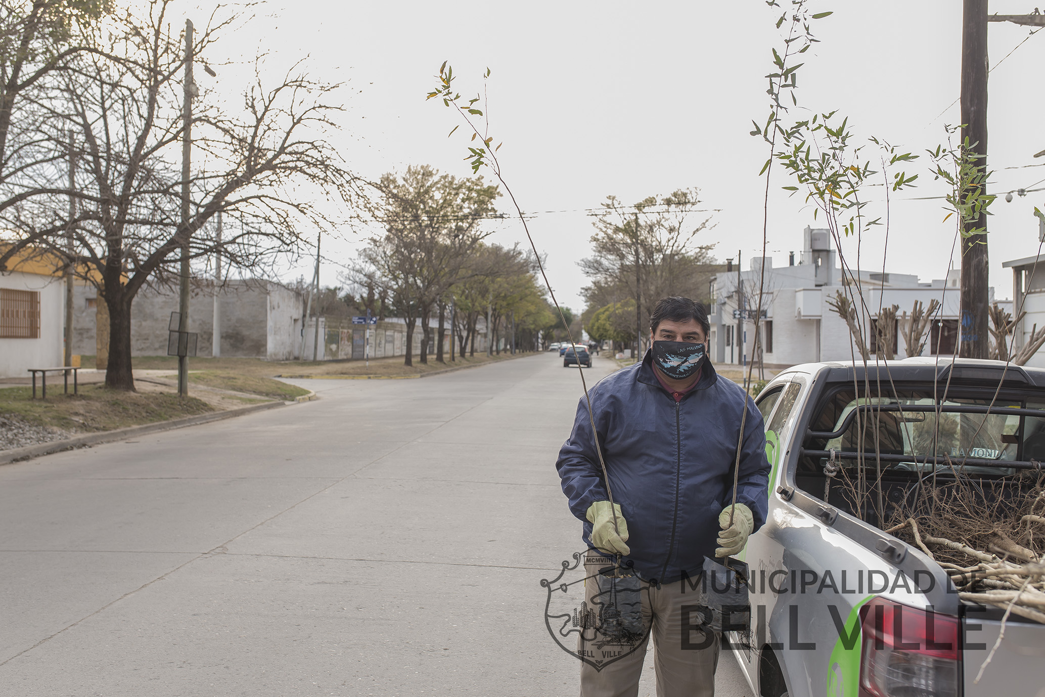 Desde la producción del Vivero Municipal y con la intervención del Área de Bromatología y Saneamiento, se llevaron gratuitamente hasta la puerta de cada bellvillense que lo requirió, 10 Fresnos, 14 Rosas de Siria y 45 Sen de Campo, totalizando 69 ejemplares.