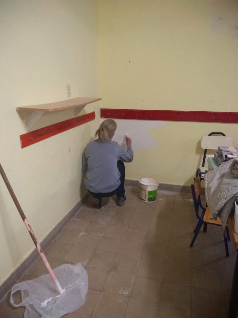 Aprovechando el receso marcado por la emergencia sanitaria, el personal de la Casa del Niño prosigue con tareas de pintado de paredes y muebles, como así también limpieza integral del patio de juegos.