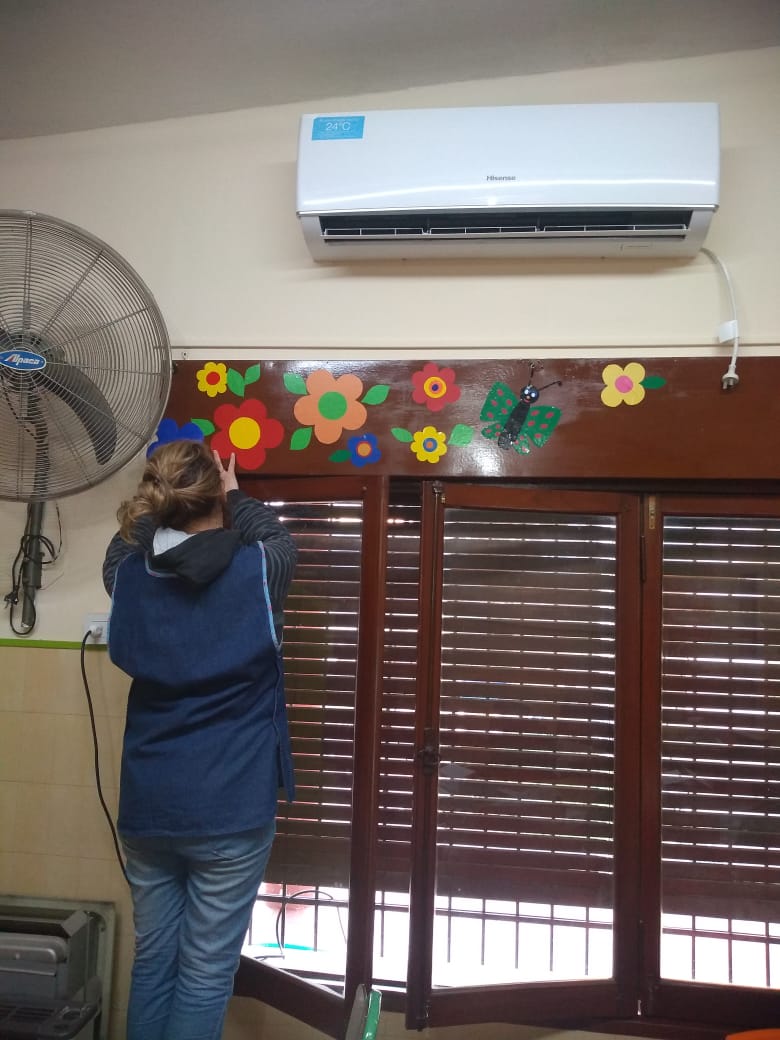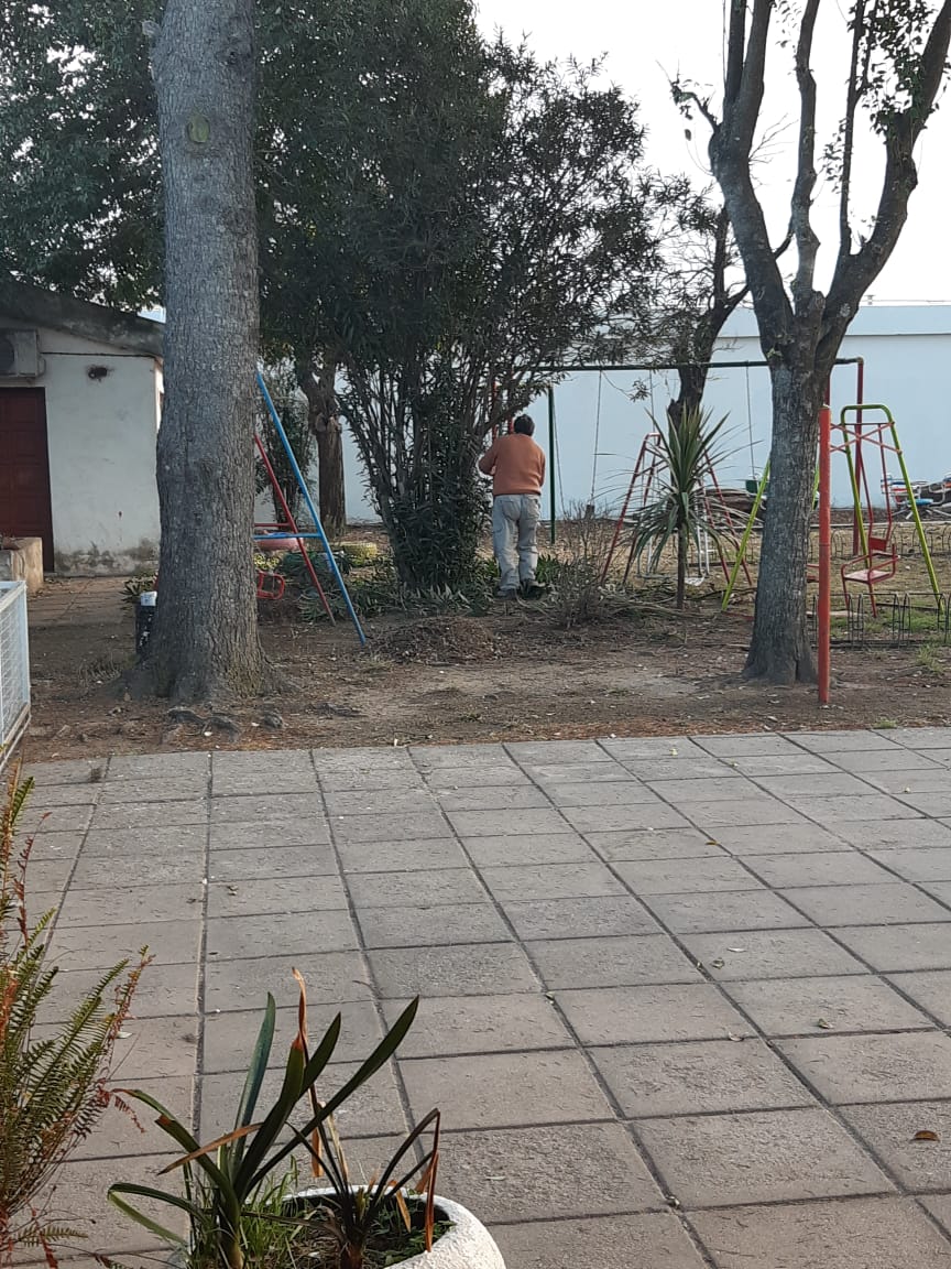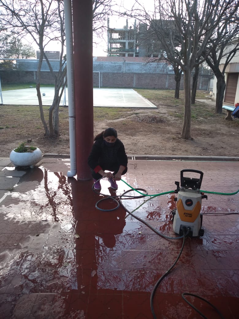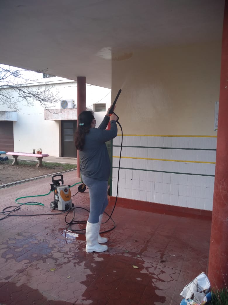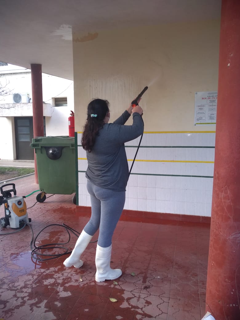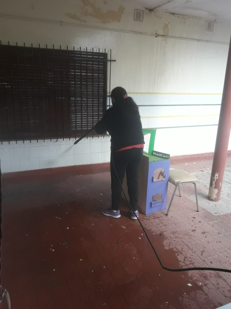 En el caso de la limpieza del sector externo del edificio, está colaborando personal del Área de Servicios Públicos de la Municipalidad.