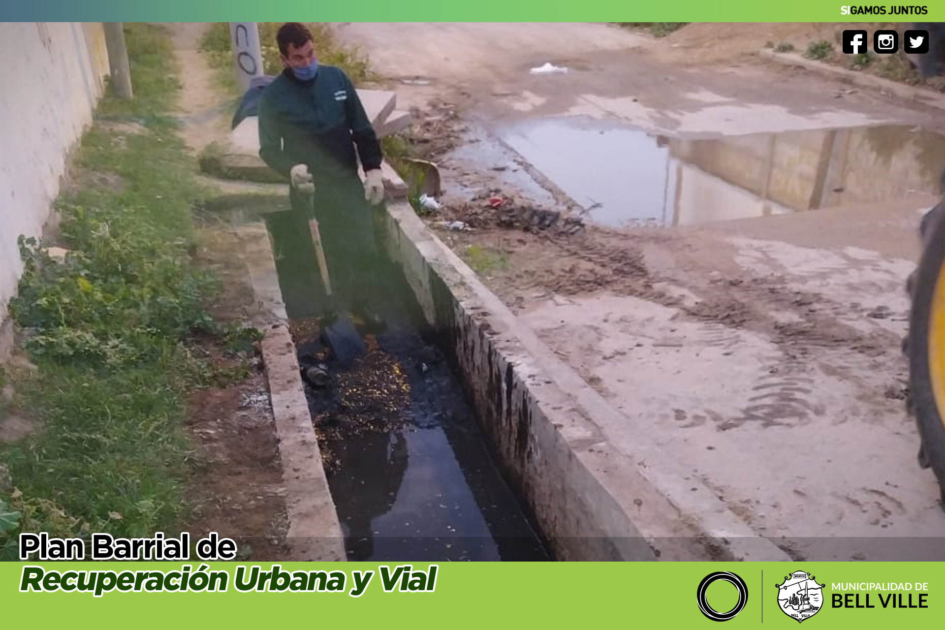 Prosigue la limpieza del canal de desagüe de Pasaje Martín Fierro y América.