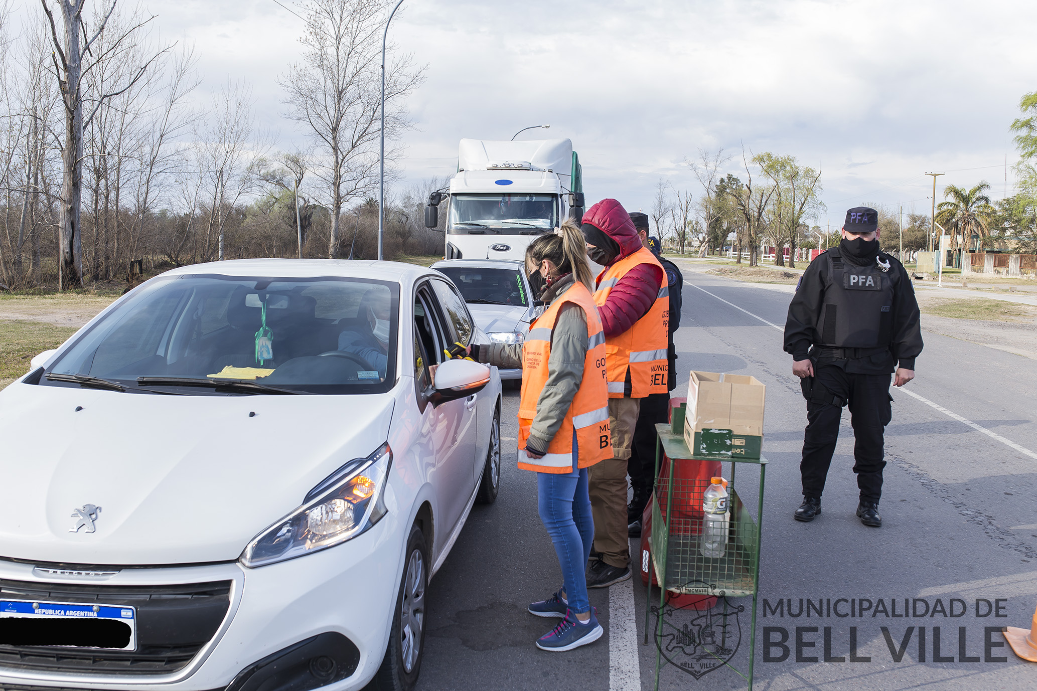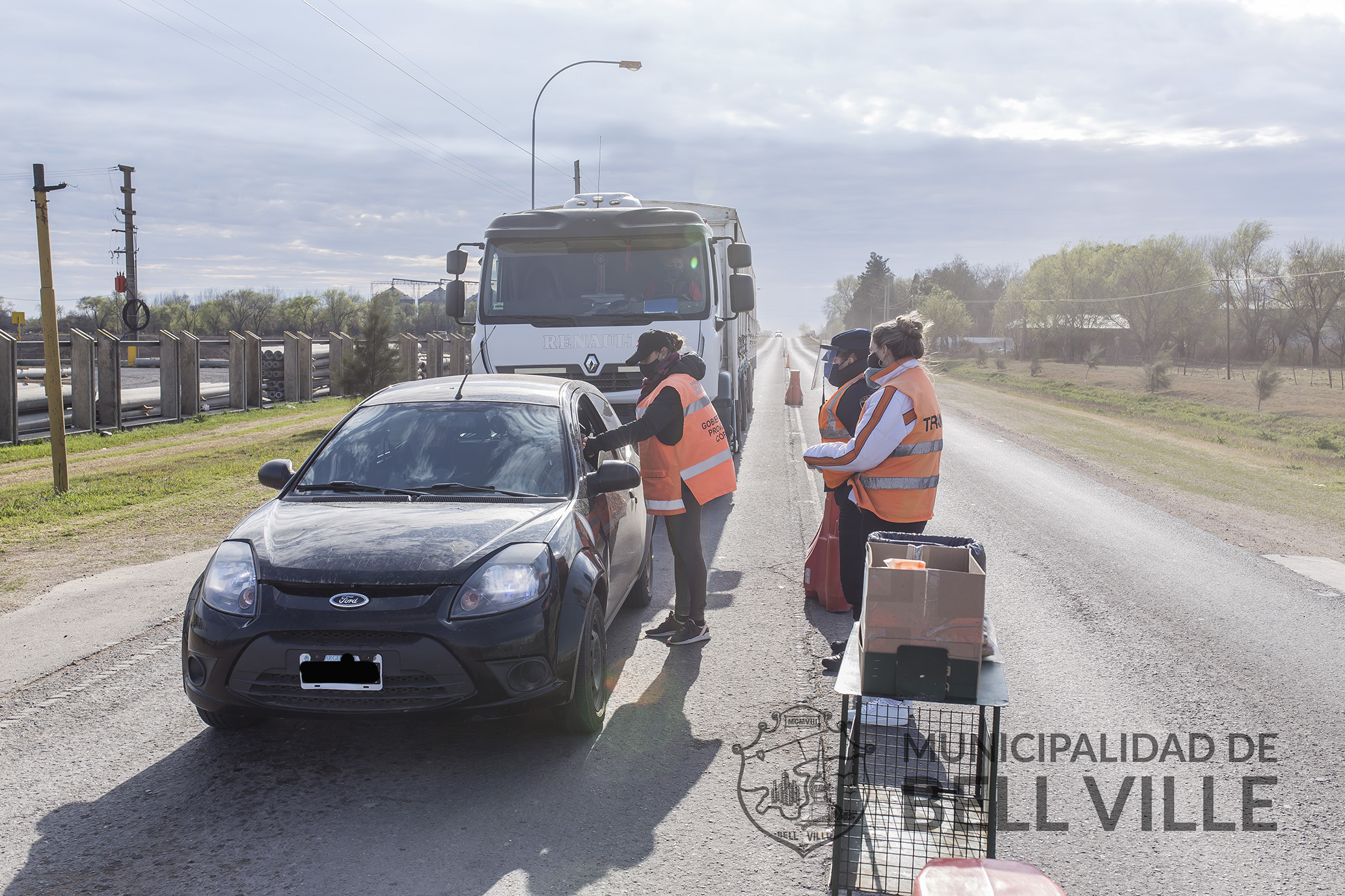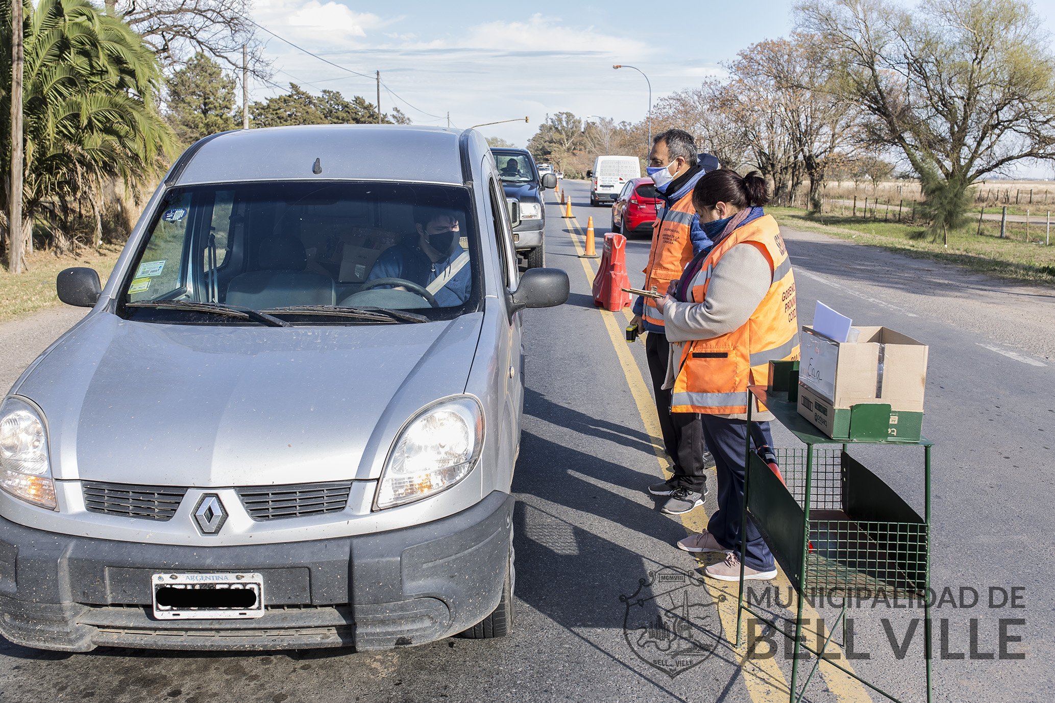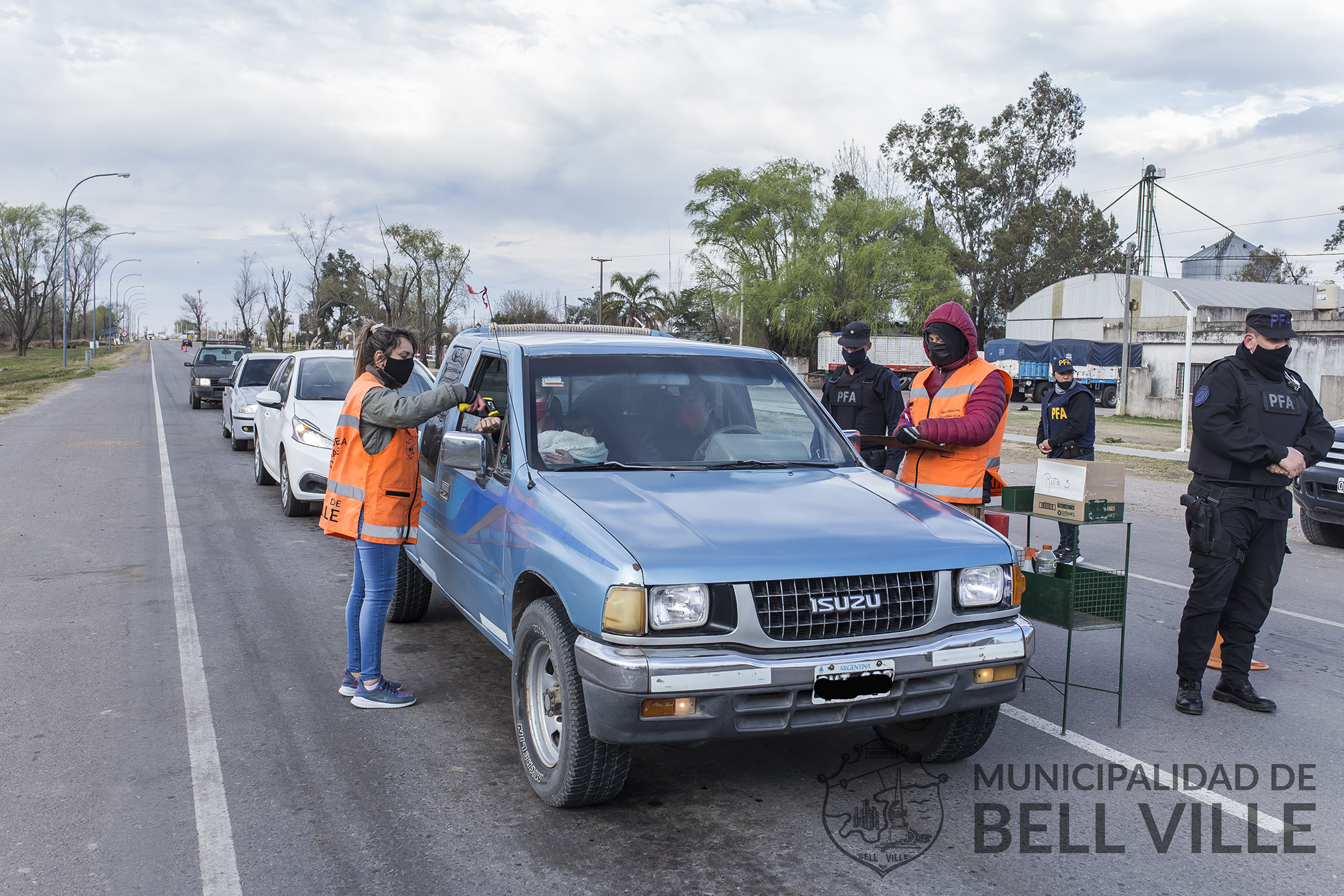 En la presente jornada, los controles sanitarios ubicados en los ingresos a Bell Ville, cuentan con la participación de voluntarios que se inscribieron y fueron capacitados para esta tarea.