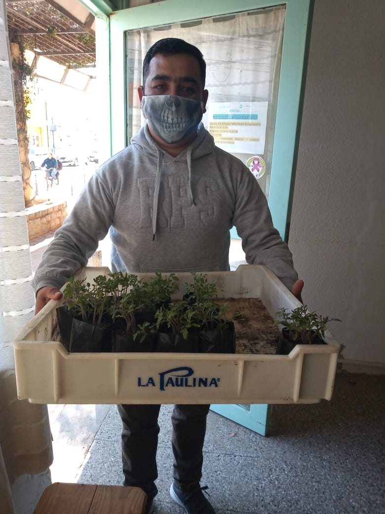 Personal del Área de Centros Vecinales de la Municipalidad, entregó una importante cantidad de plantines de tomates donados por el Ingeniero Agrónomo Lucas Goboni, docente de la materia Producción Vegetal 2 Opción Vivero del IPEA N° 293 Agr. Orestes Chiesa Molinari-Ex Ena.