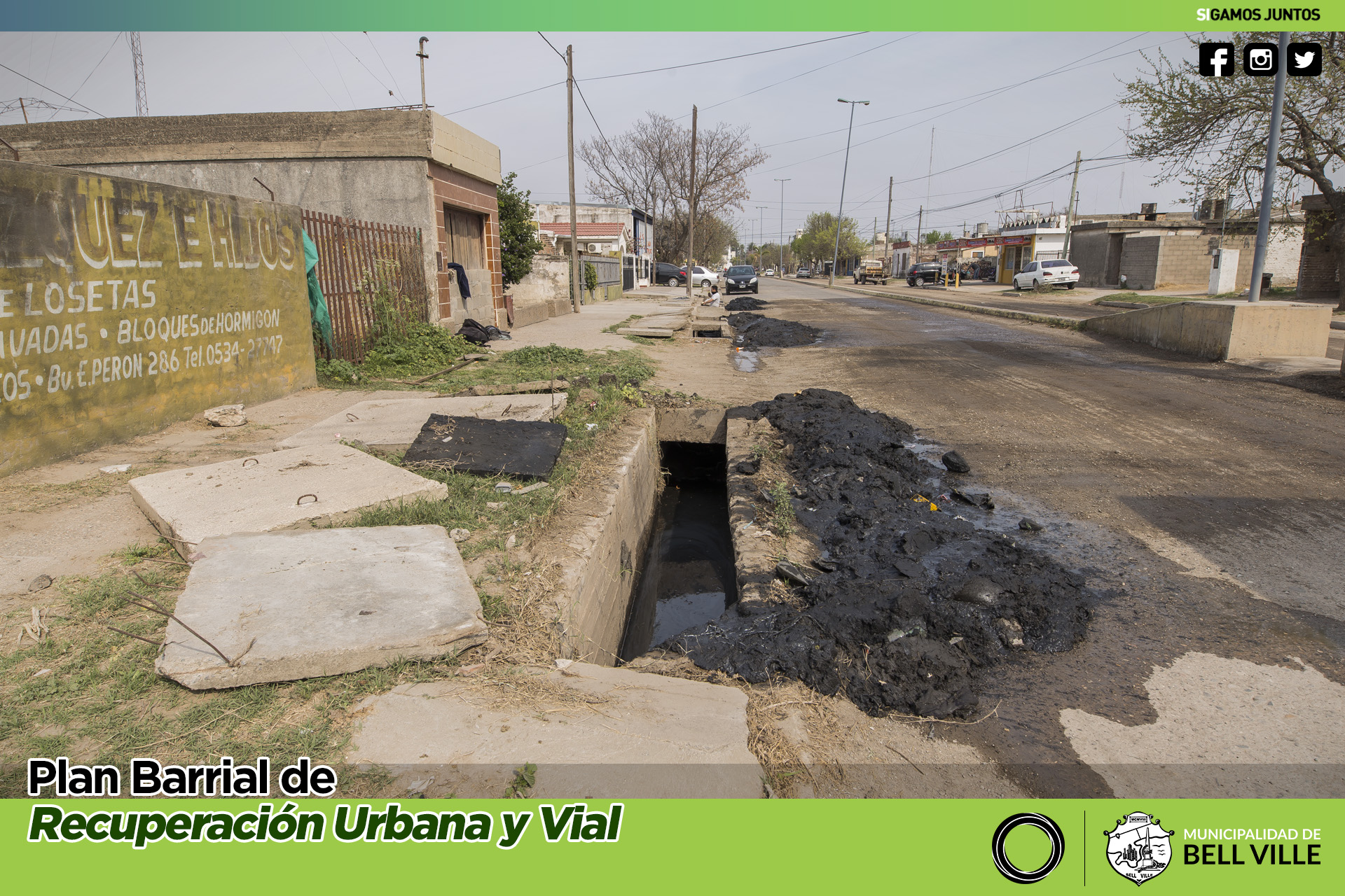 Se trabaja en la limpieza del canal de bulevar Eva Perón en el tramo entre calles Mármol y Rodríguez Peña.