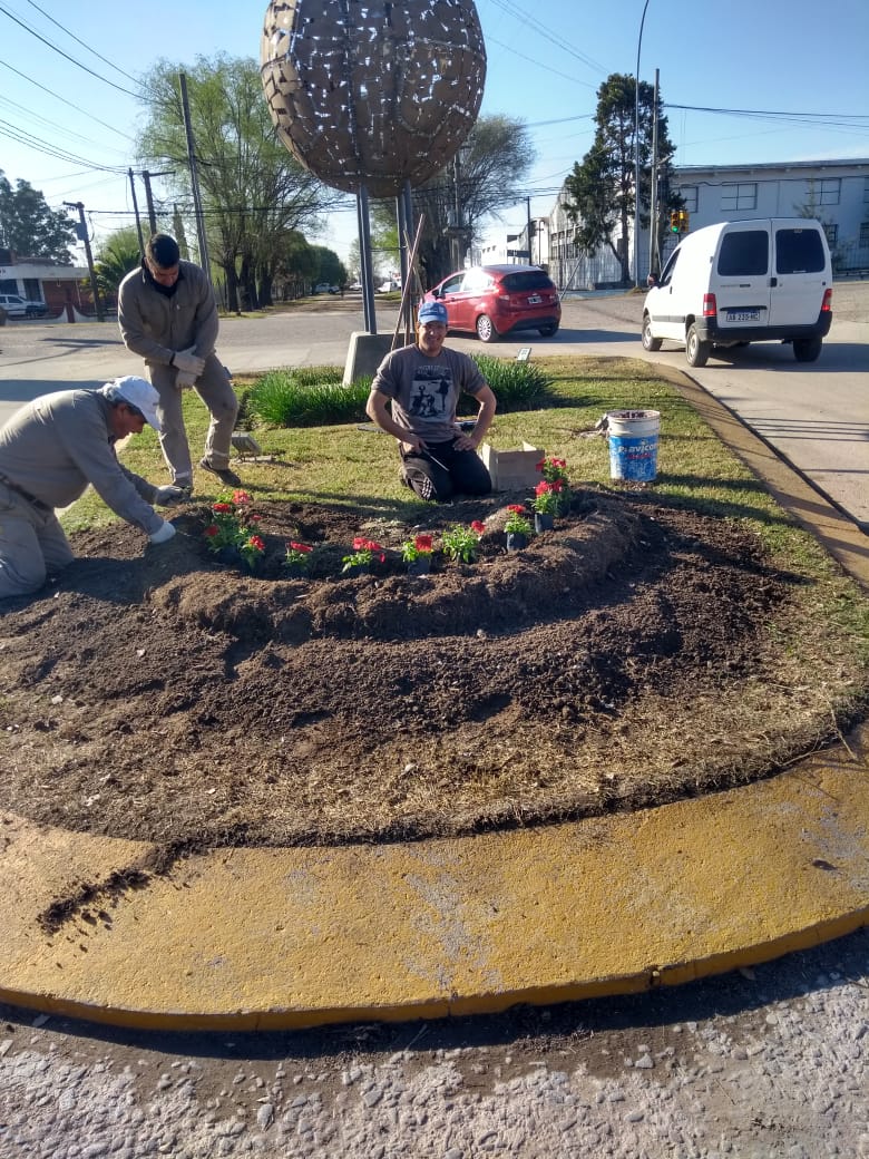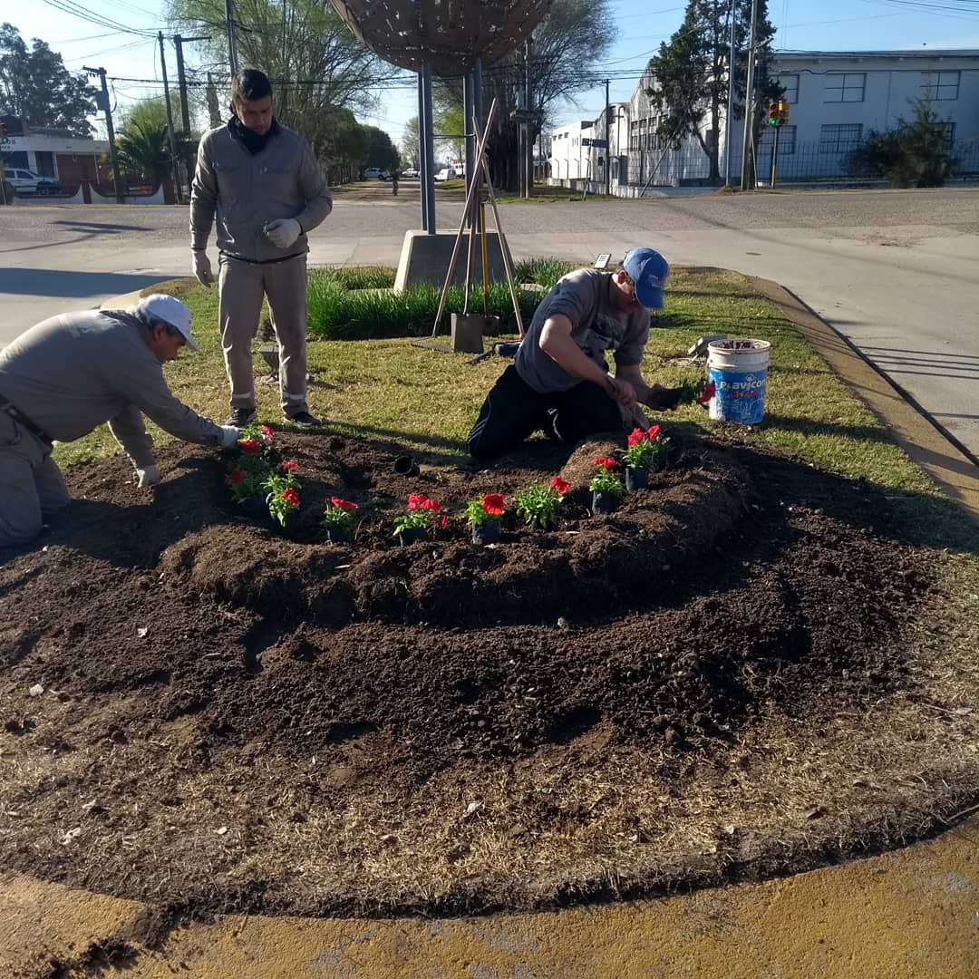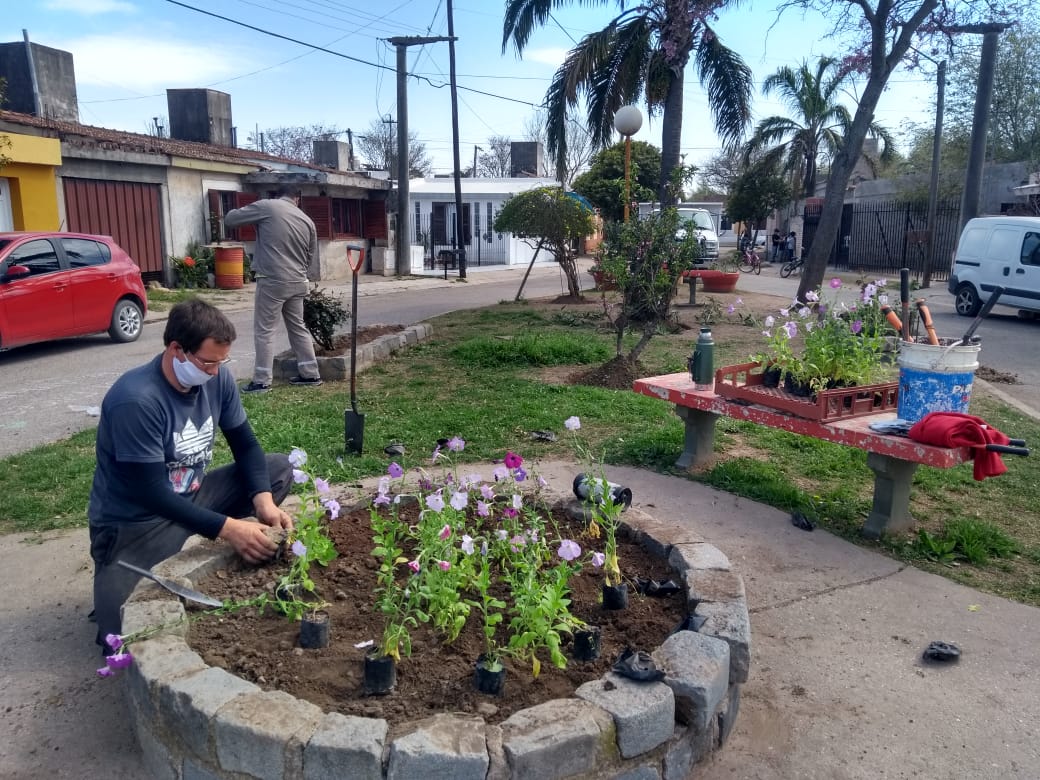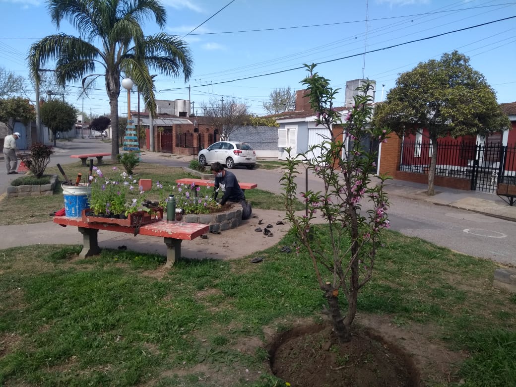 Por otra parte, trabaja en los dos espacios verdes ubicados frente al salón municipal de usos múltiples de calle Tucumán.