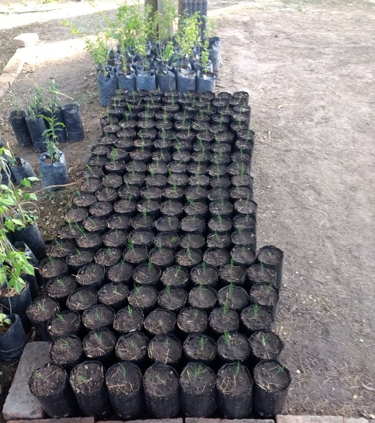 Se están disponiendo en pequeñas macetas los plantines de casuarinas desarrolladas íntegramente en el Vivero Municipal y que se destinarán a la forestación de zonas agropecuarias.