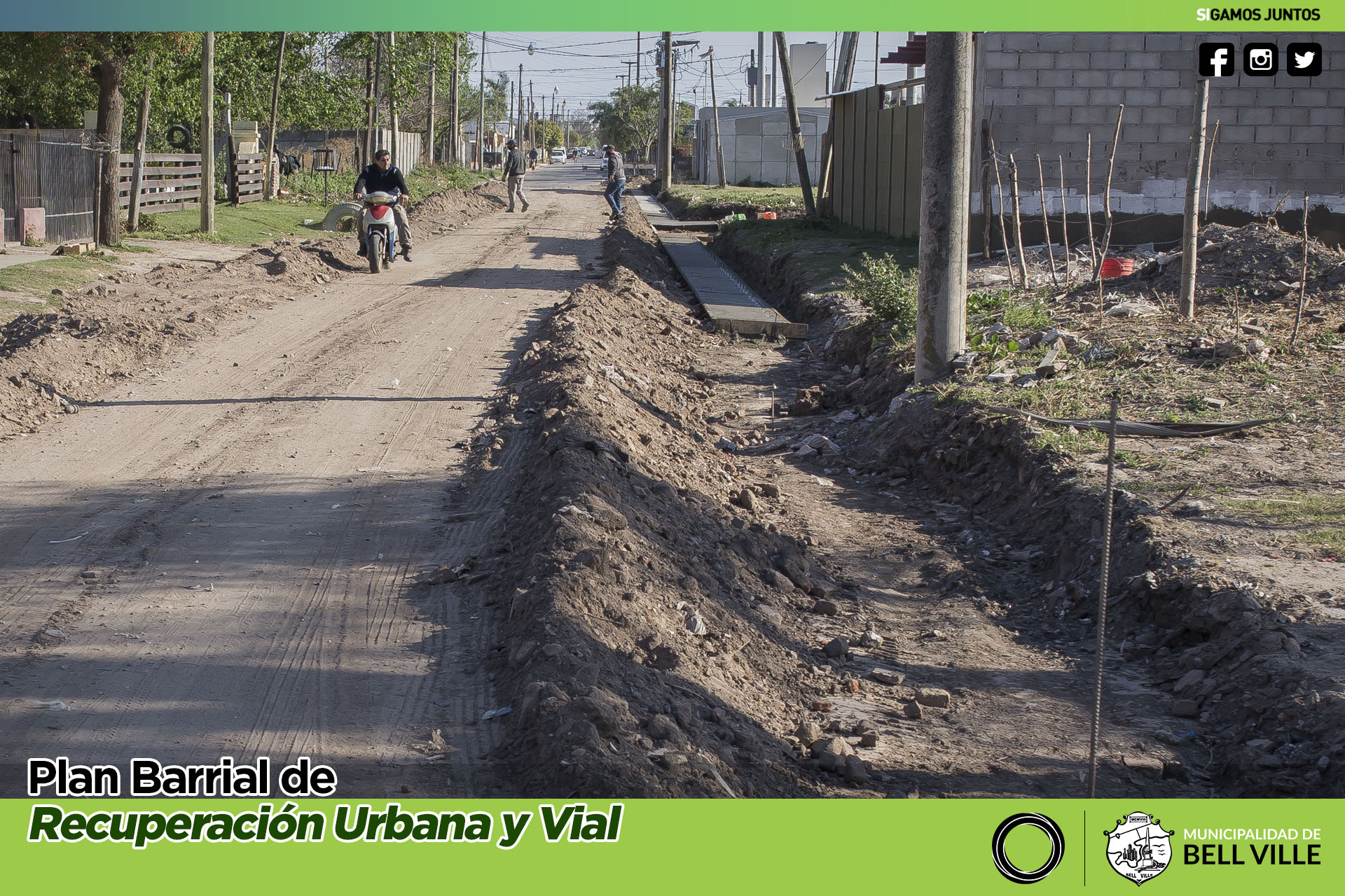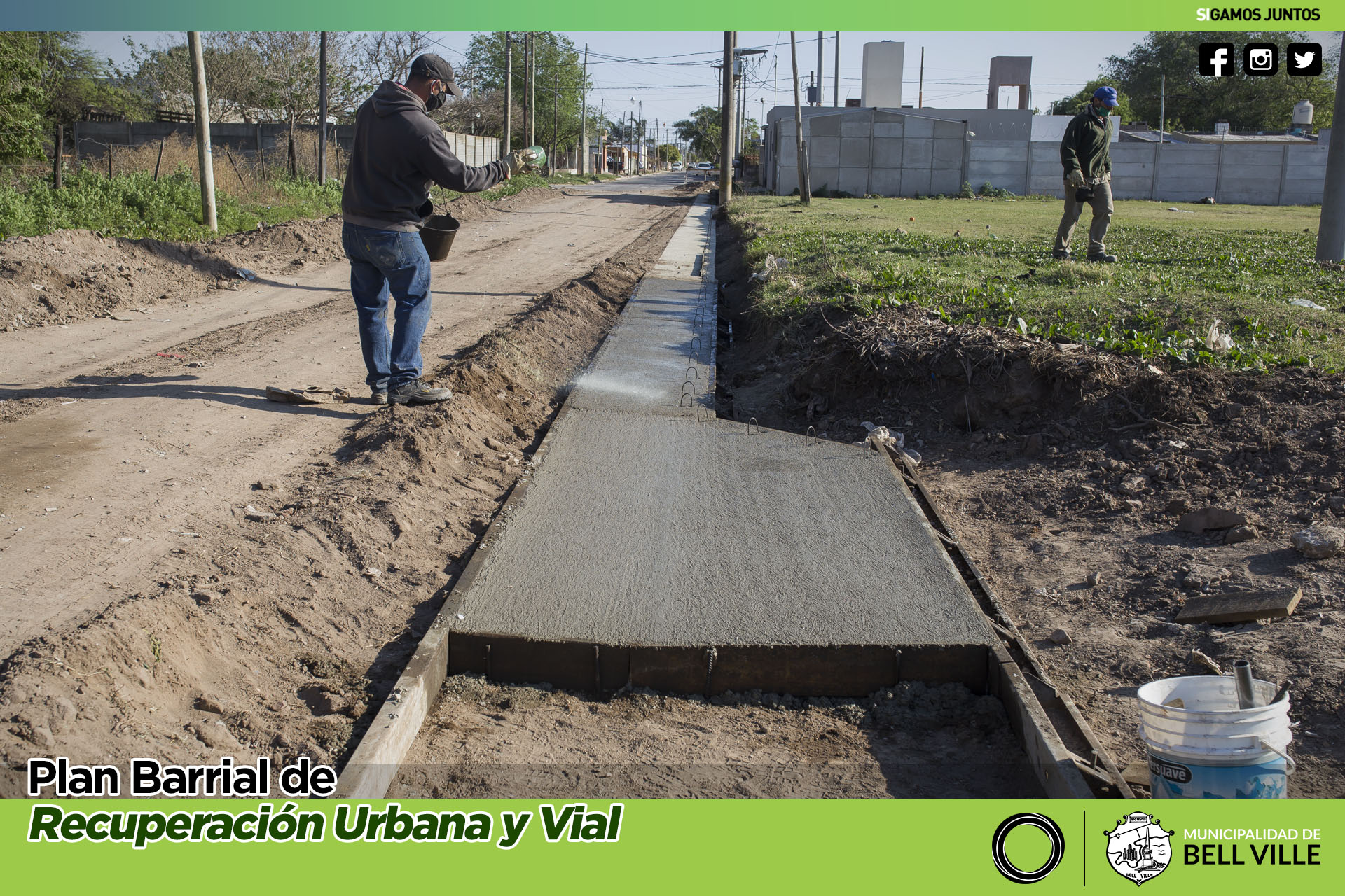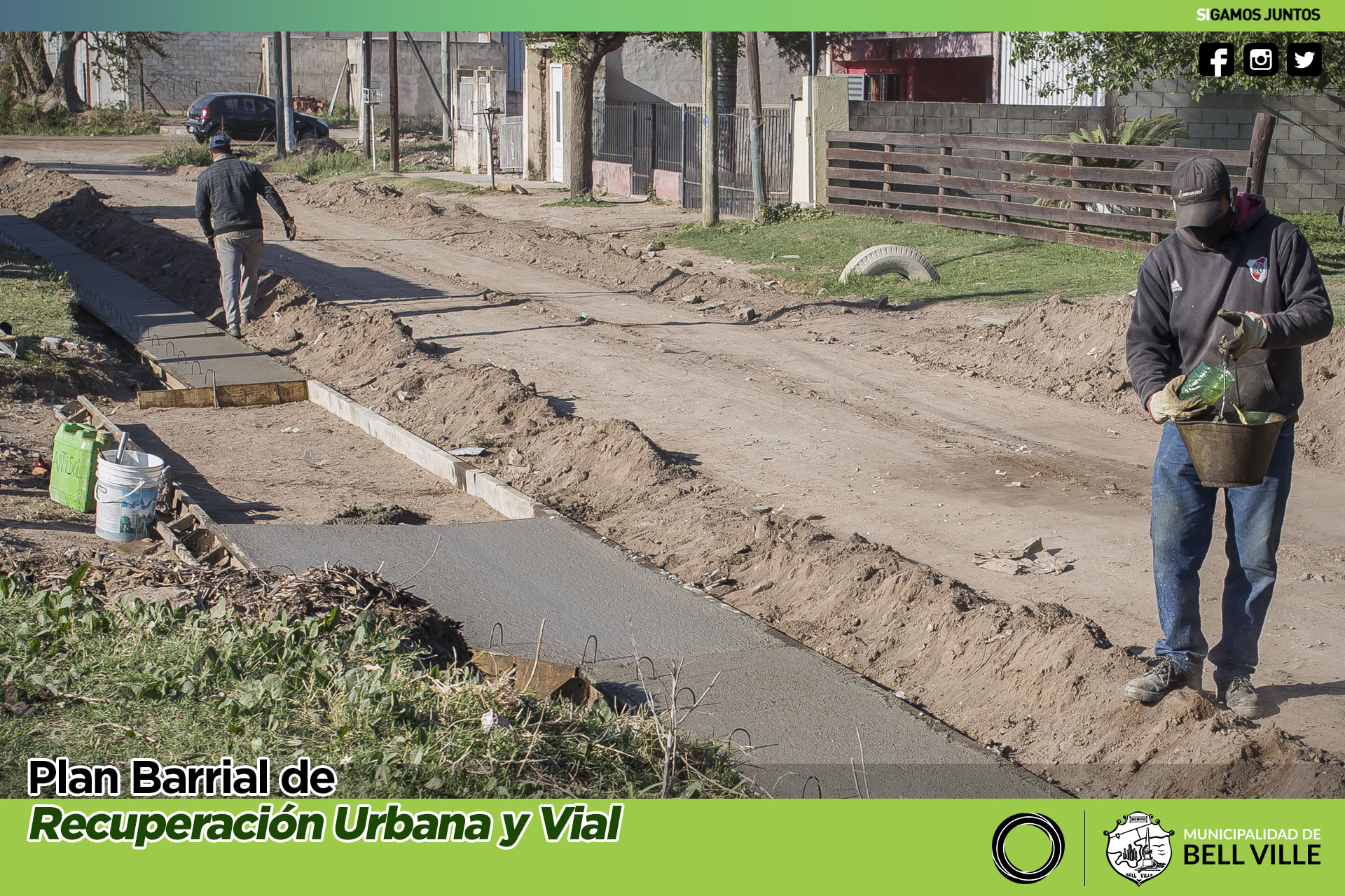Con recursos municipales del Plan Barrial de Recuperación Urbana y Vial, se cumple la primera semana de construcción de cordón cuneta con hormigón simple en calle Alem, entre bulevar Ombú y Progreso.