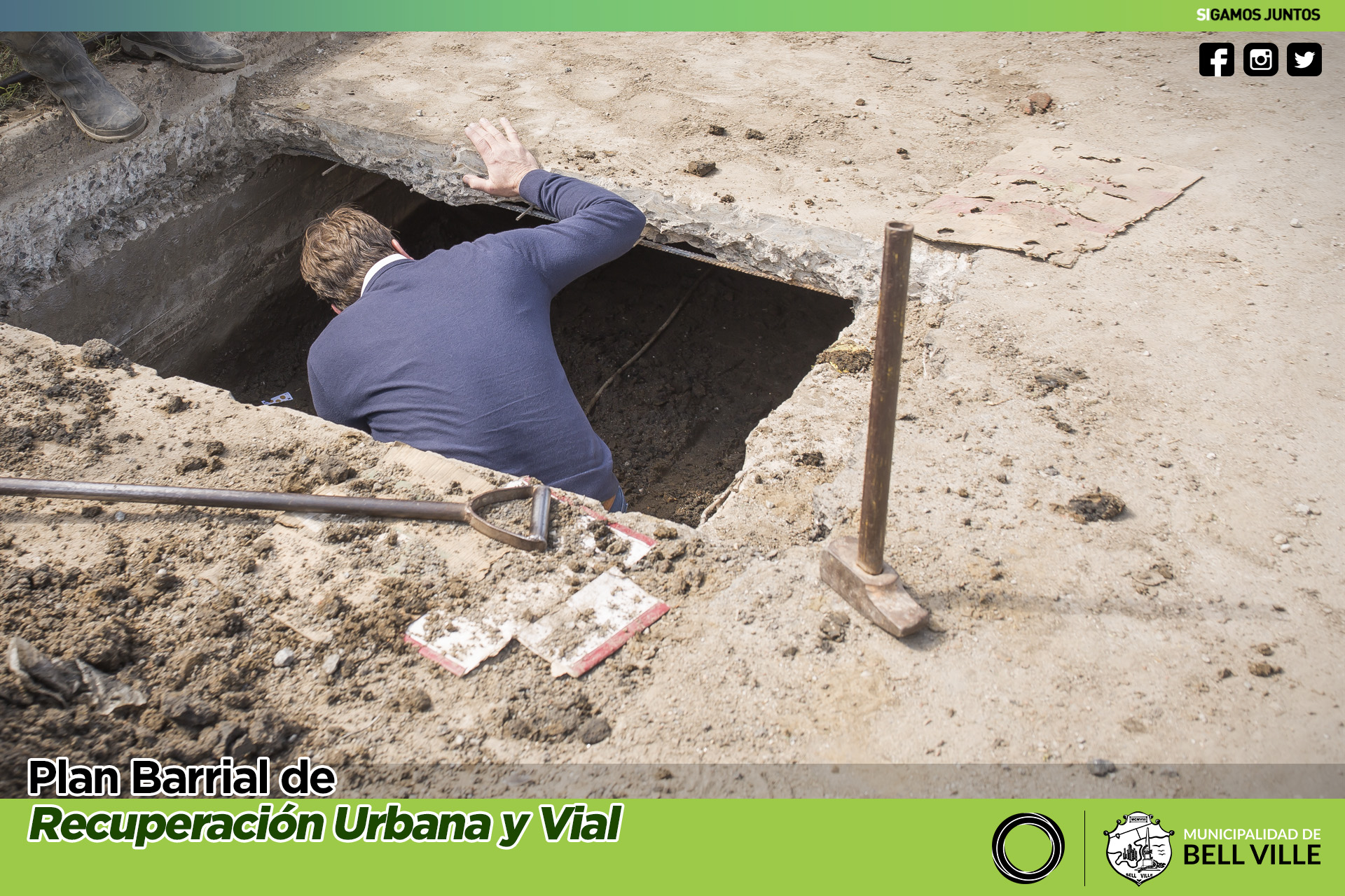 El intendente Carlos Briner visitó la obra y observó el trabajo que se está cumpliendo, ya que además del desbloqueo total del ducto, se construyen con cemento cámaras de inspección para simplificar la tarea en limpiezas a futuro del desagüe.