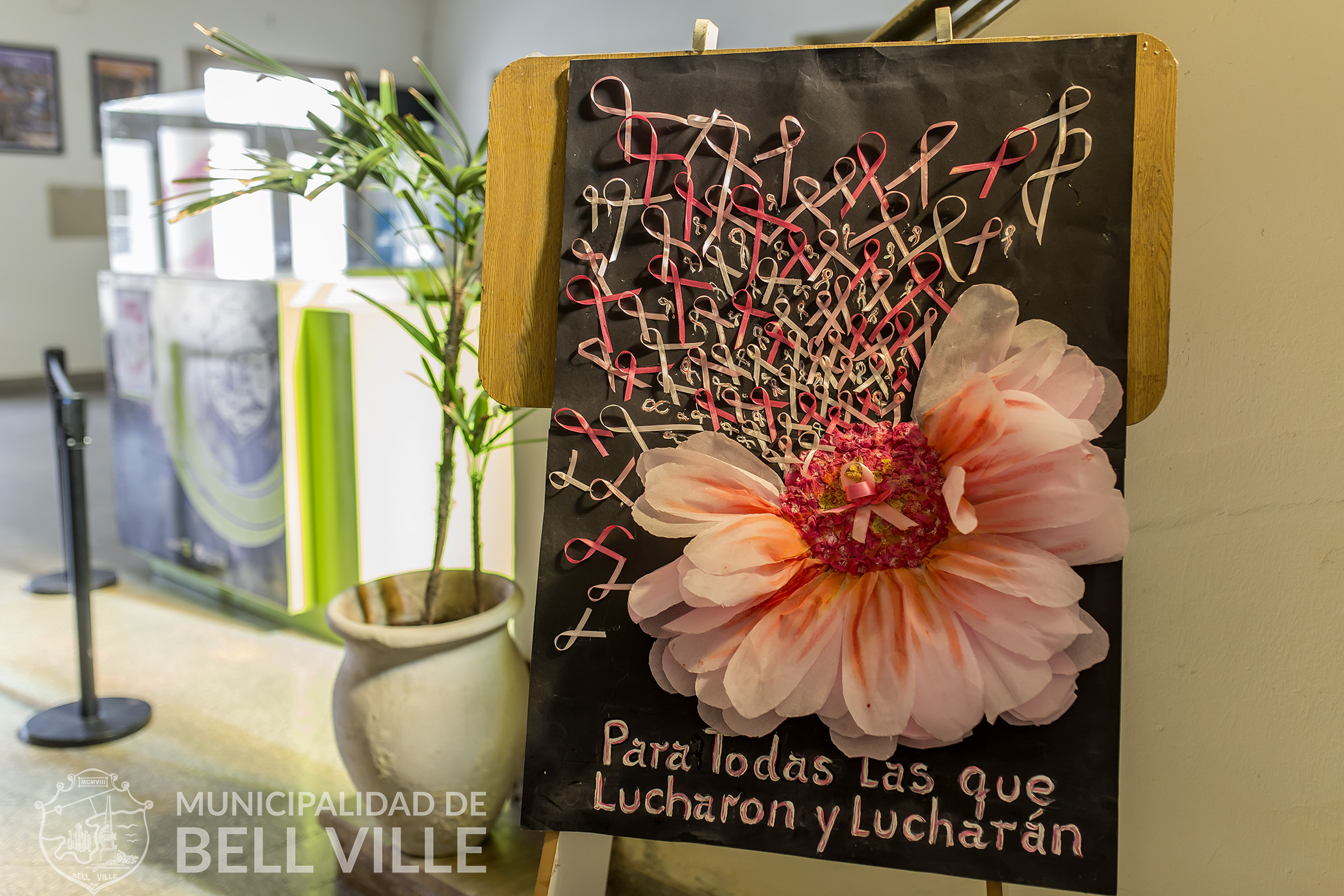 En el hall del edificio municipal se muestra desde hoy un llamativo afiche realizado por voluntarias de ALCEC Bell Ville, cuya exhibición será permanente a fin de contribuir a la prevención del cáncer de mamas.