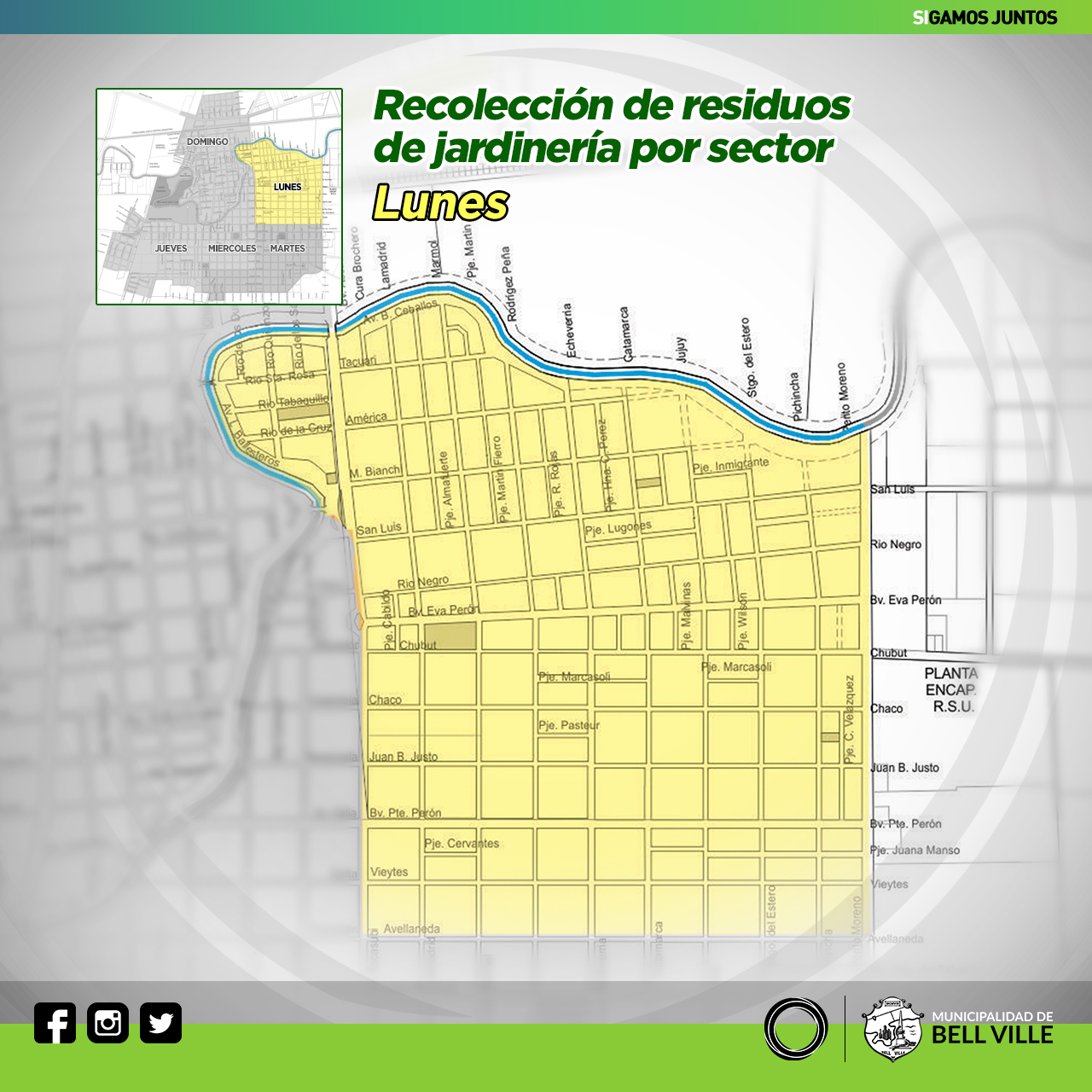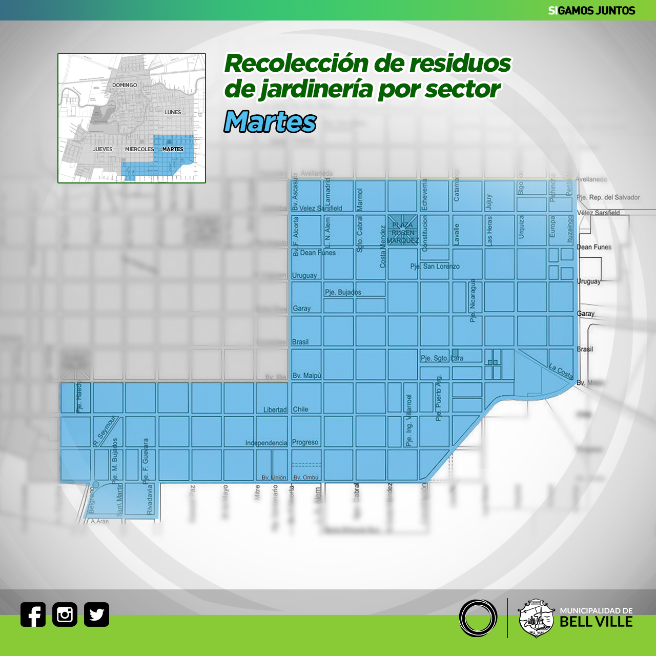 El Área de Servicios Públicos, reitera los días y horarios en los que de acuerdo a la zona, se retiran los restos de limpieza de jardines y podas menores, los cuales deberán estar embolsados y depositados al pie de los canastos de recolección de residuos.