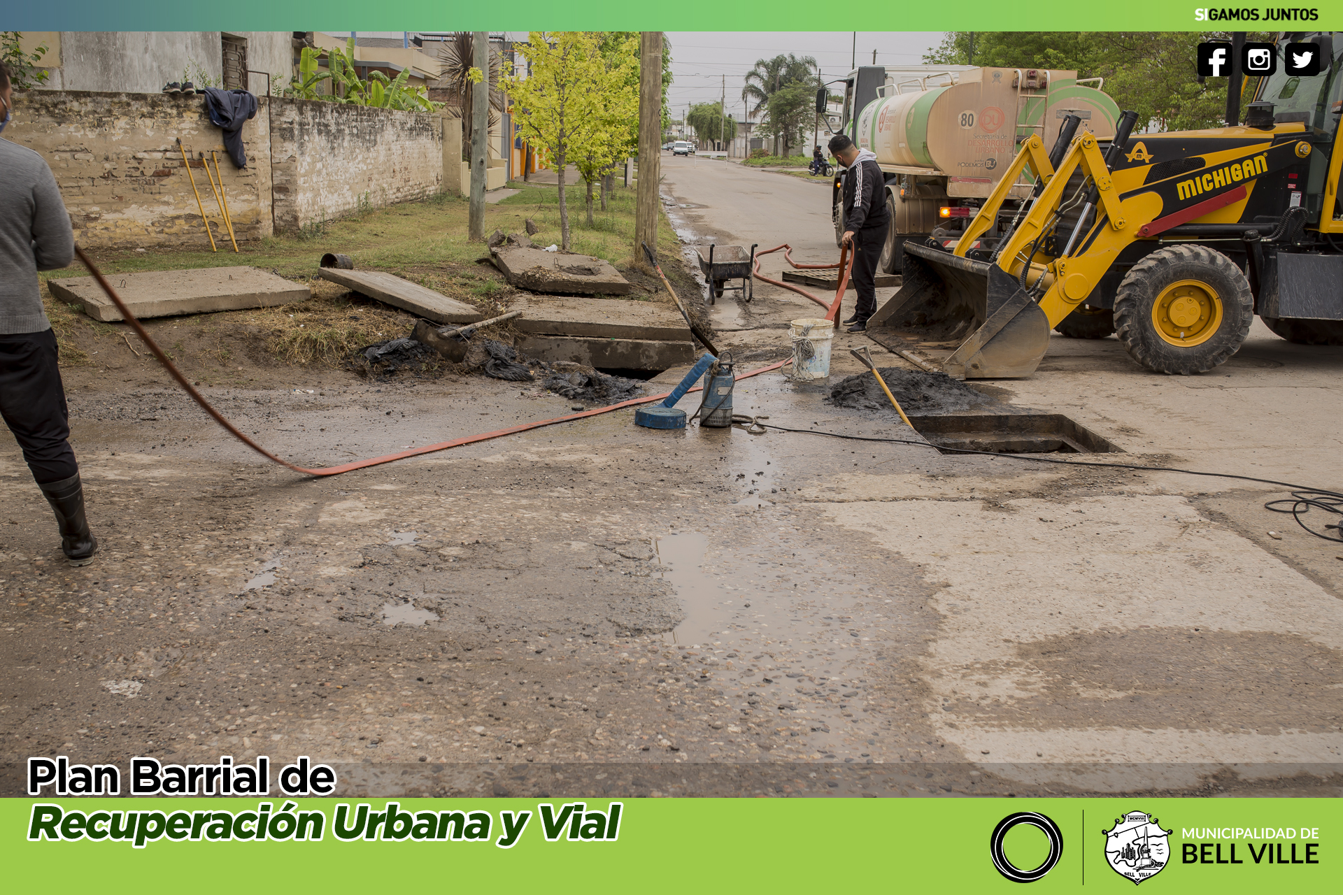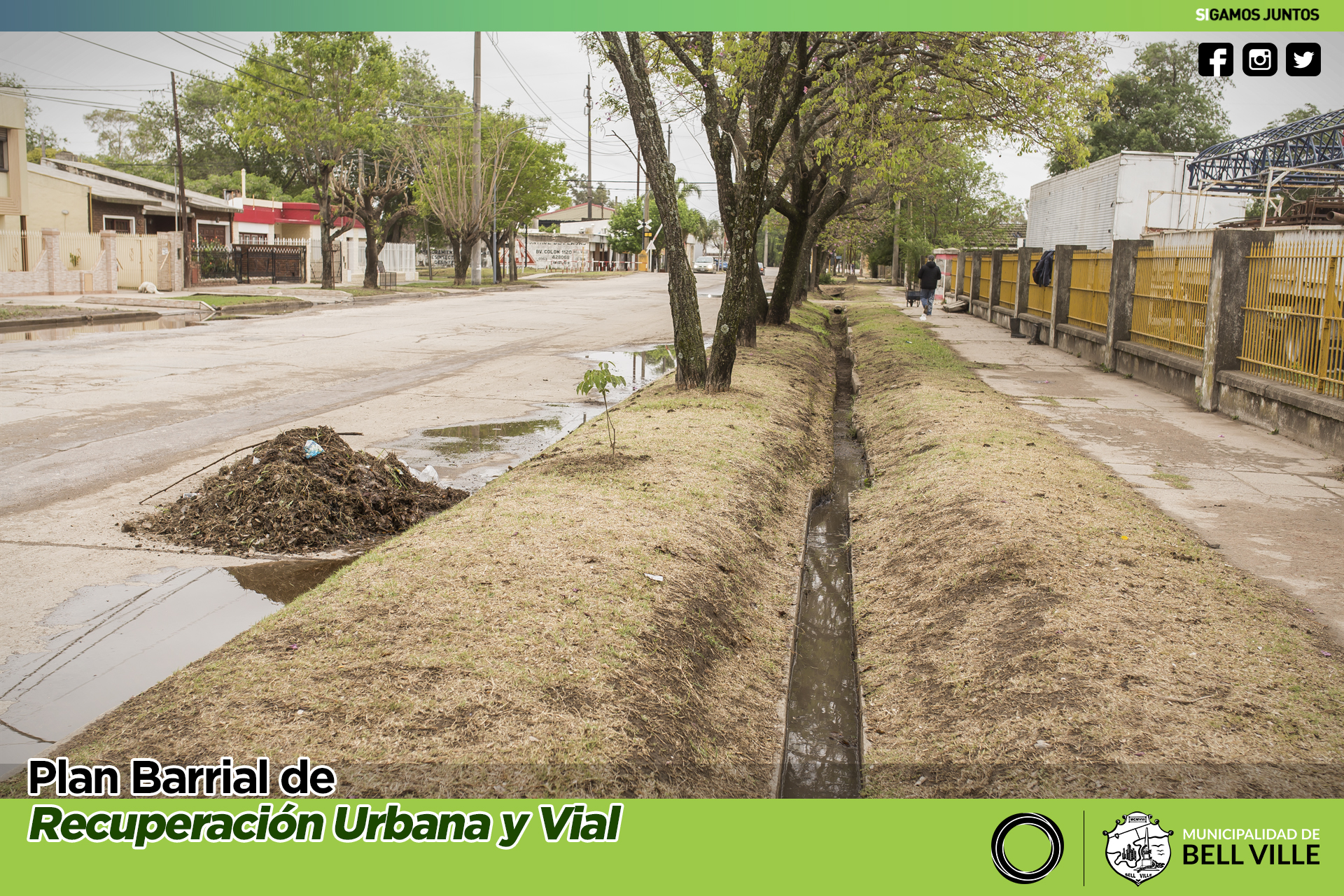 Por otra parte, también se continúa con la limpieza y mantenimiento de los canales de desagües de la zona de ingreso por la Ruta N° 9.