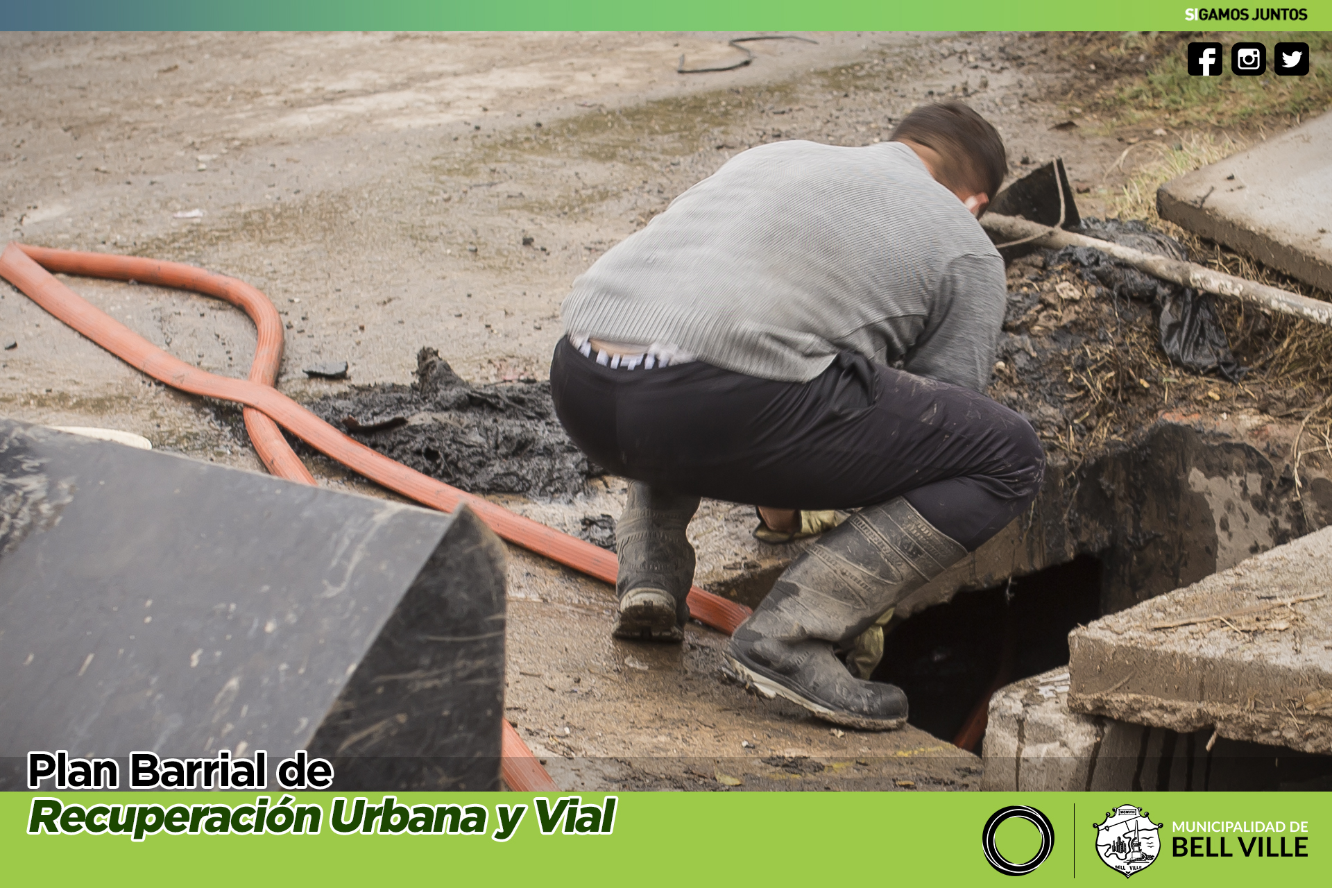 Comenzó la limpieza de las bocas de tormenta que desaguan en el canal de bulevar Eva Perón, en su intersección con calle Mármol.