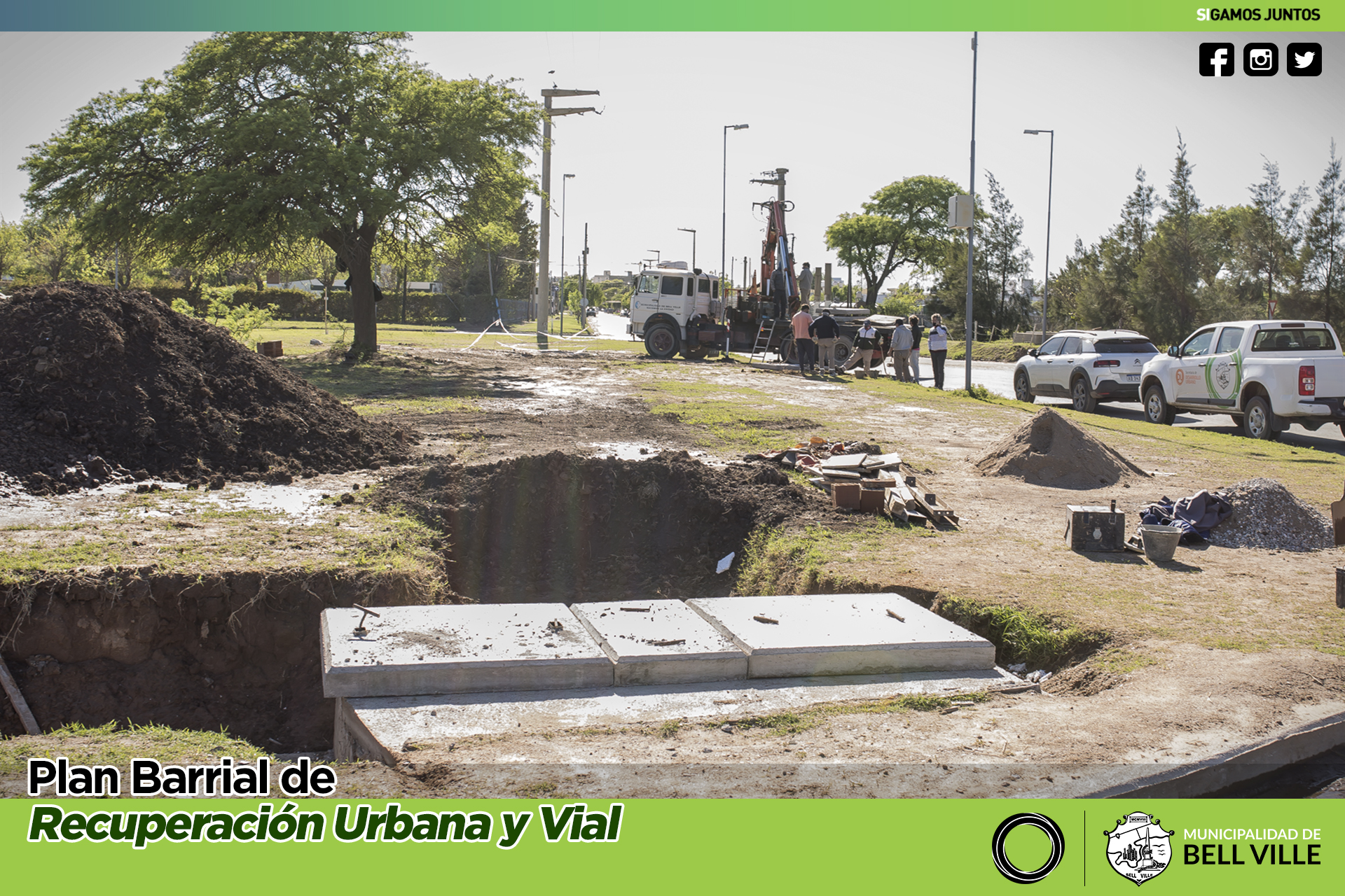 Posteriormente, se lo recubre con tierra para de esta manera, terminar con la tarea del canal que trae el agua de lluvia del acceso Oeste, más un importante sector de sus alrededores, para desembocar en el ducto maestro hasta el río Ctalamochita.