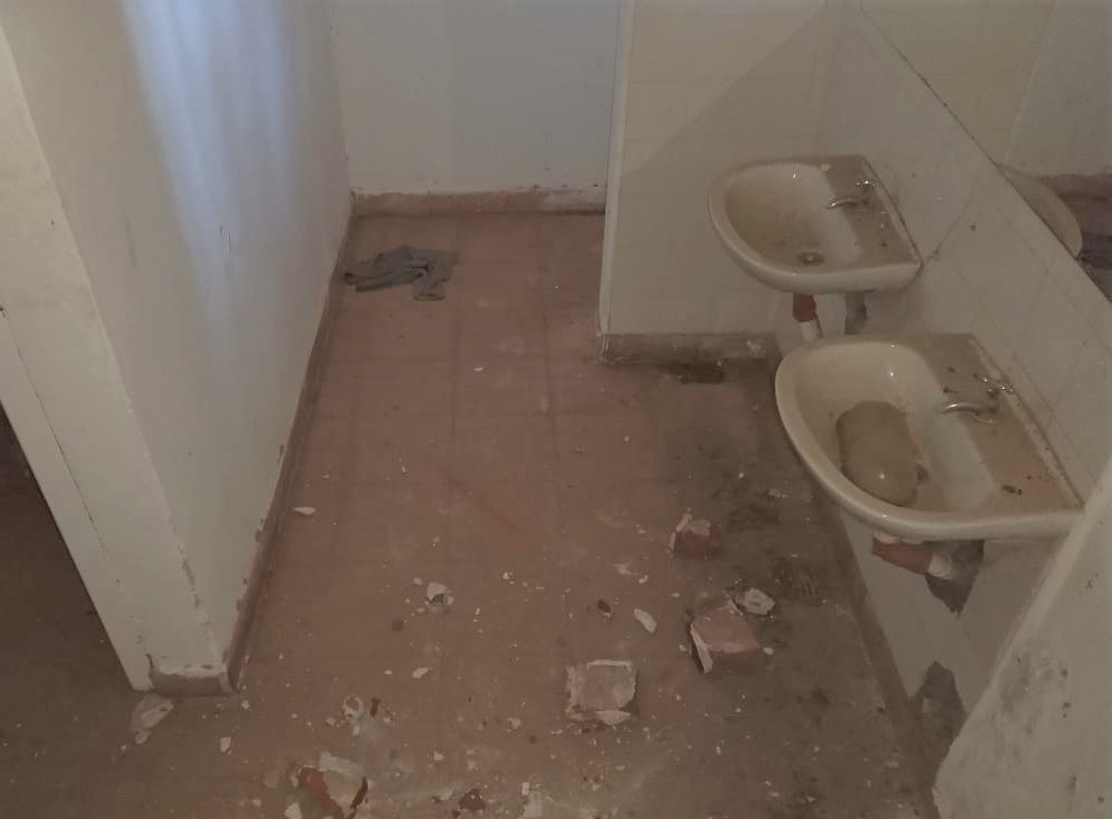 Hubo destrozos en los baños públicos y dependencias del inmueble, notándose incluso que los implicados en esta repudiable acción, consumieron bebidas alcohólicas cuyos envases abandonaron en el lugar.