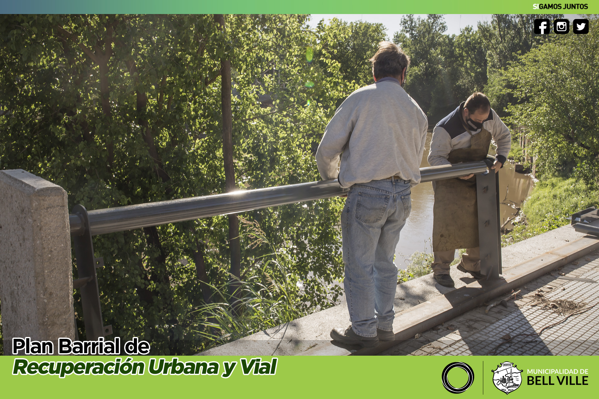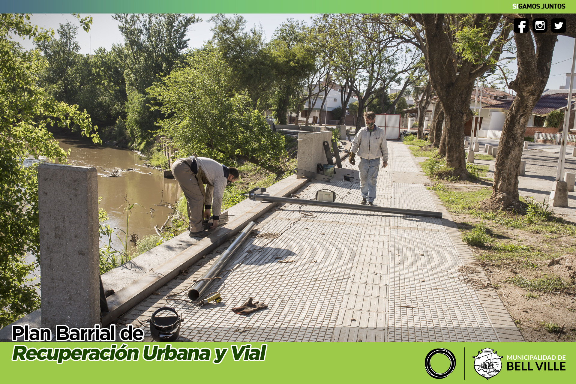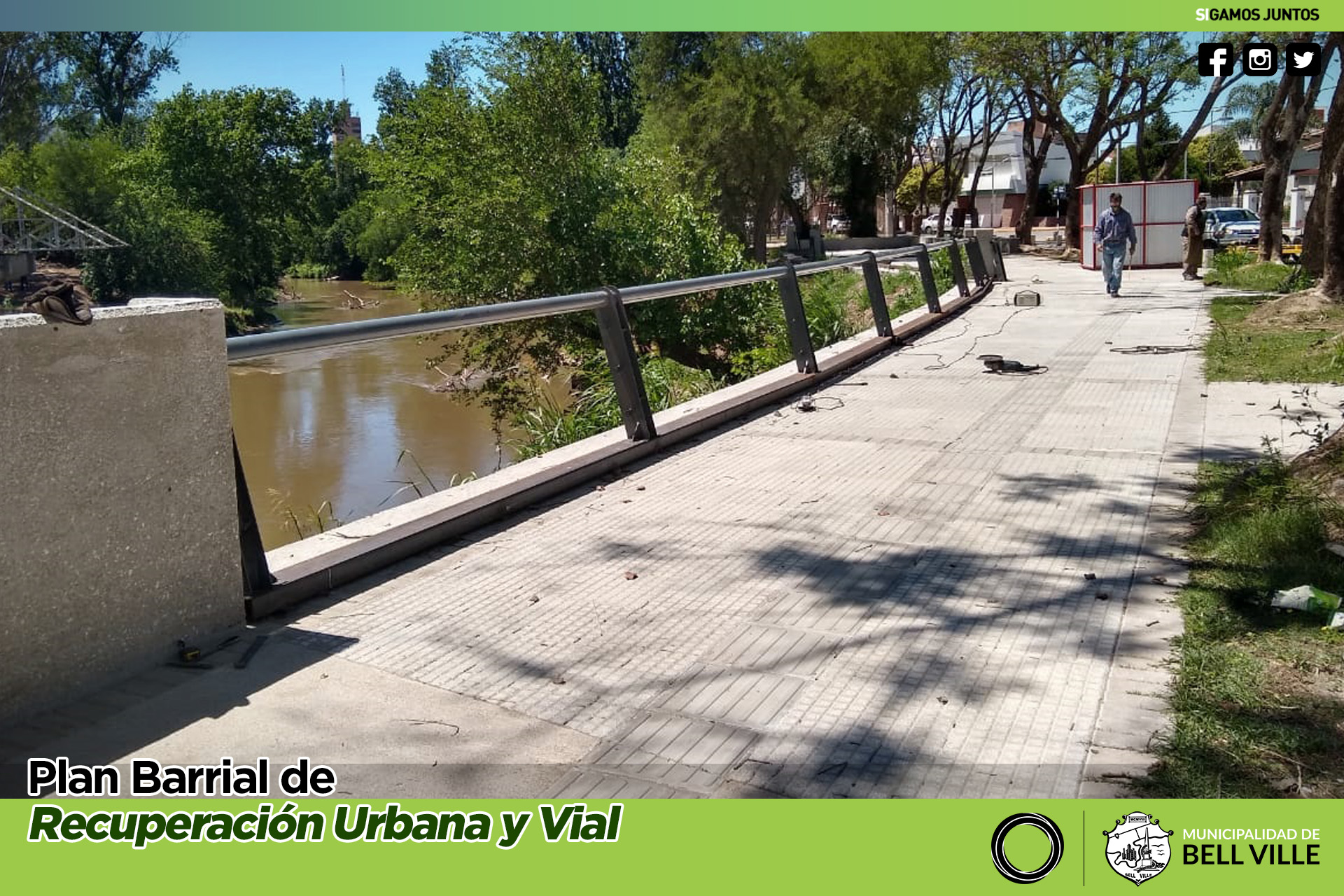 La intervención abarca la construcción y colocación de base, soportes y pasamanos, haciendo un total de 60 metros de barandas metálicas y procurando la uniformidad de las mismas protecciones instaladas en otros sitios contiguos al río.