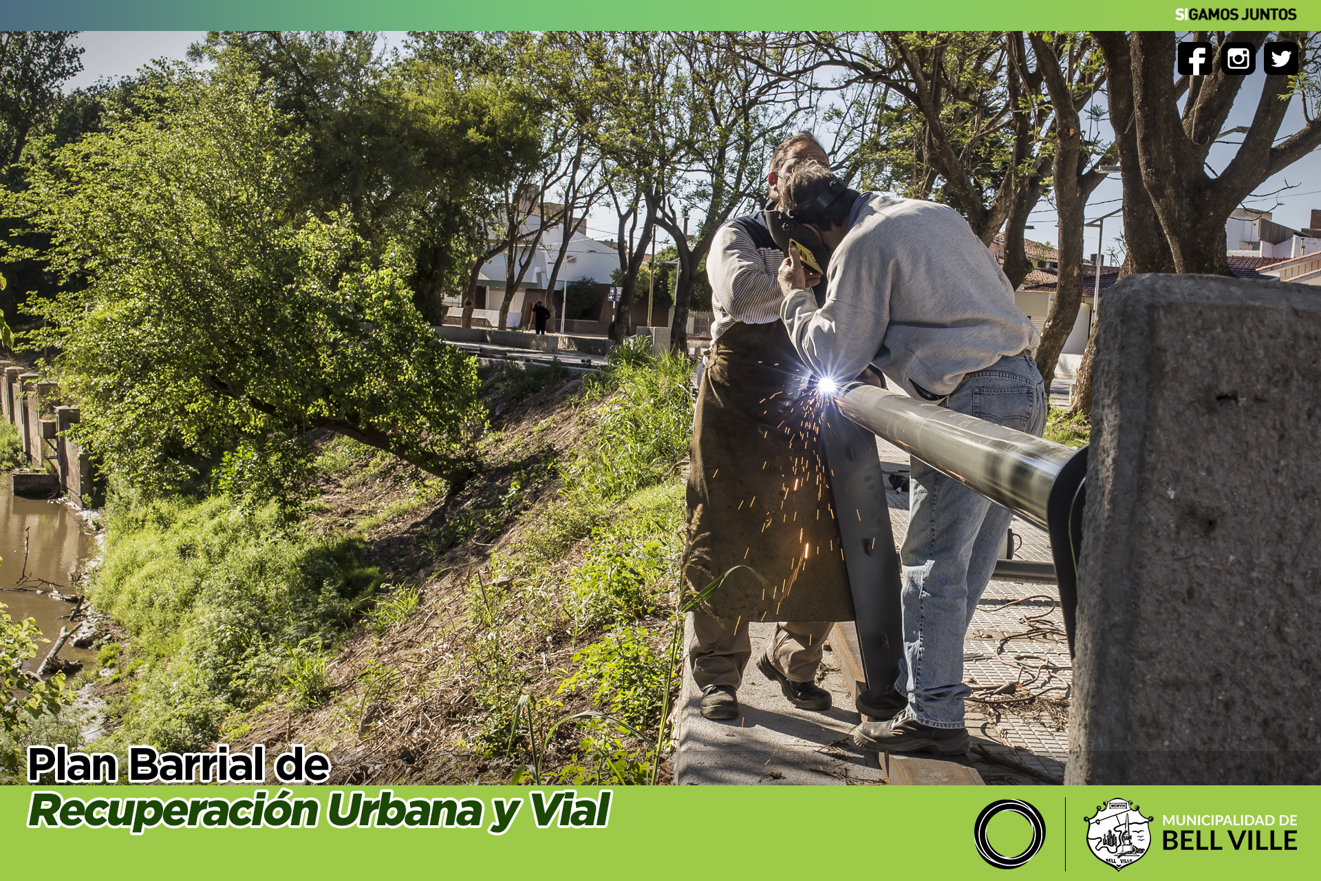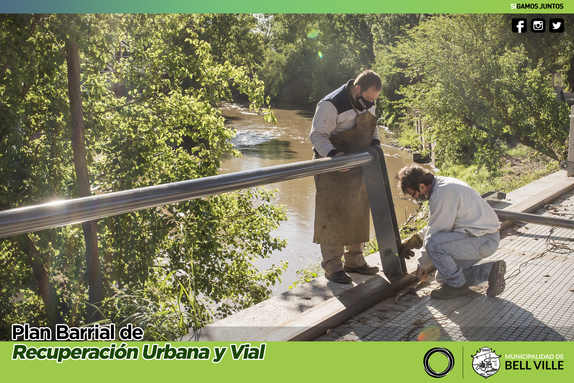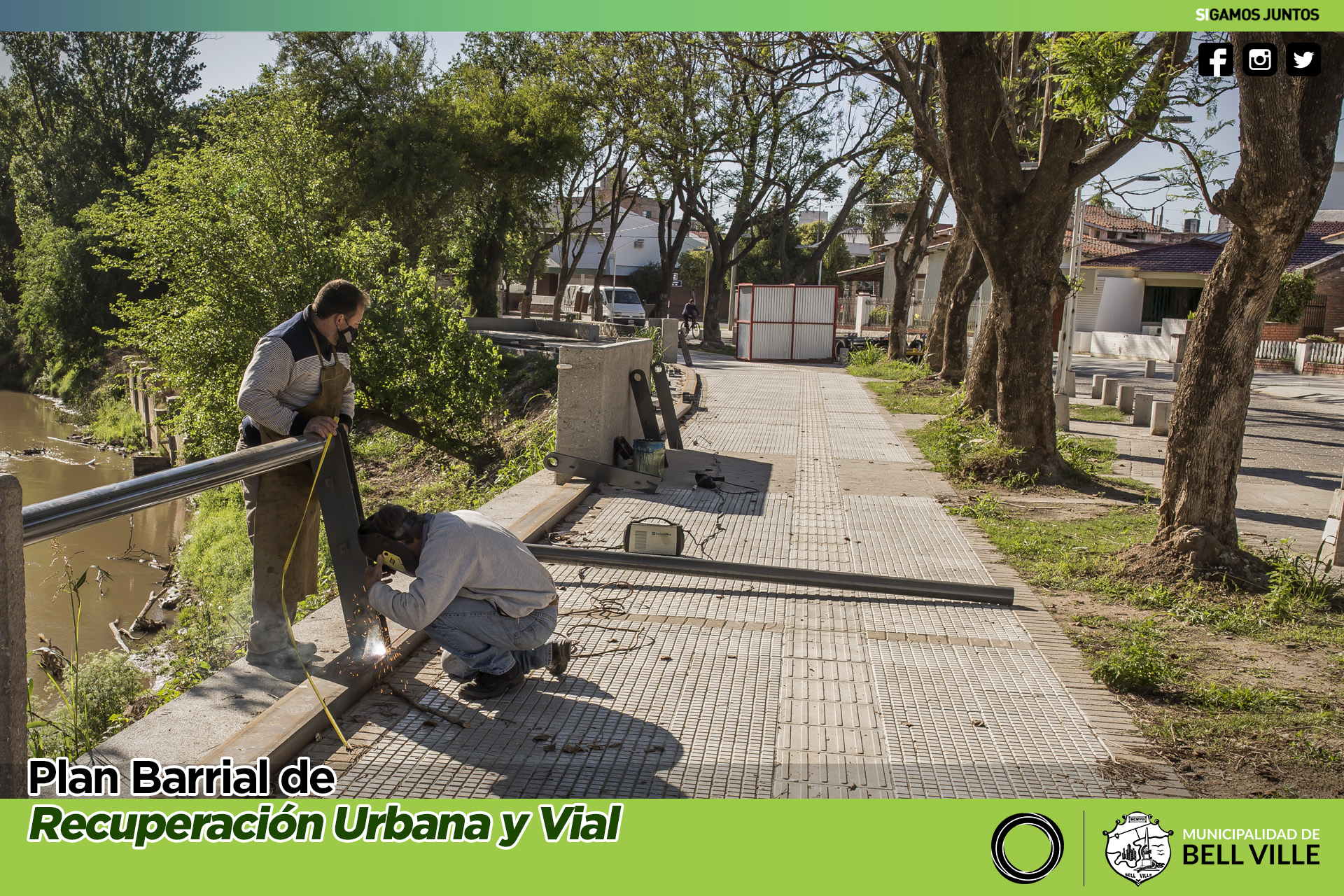 La intervención abarca la construcción y colocación de base, soportes y pasamanos, haciendo un total de 60 metros de barandas metálicas y procurando la uniformidad de las mismas protecciones instaladas en otros sitios contiguos al río.