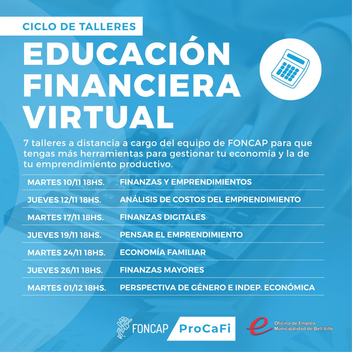 Desde la Oficina de Empleo de la Municipalidad, se están promocionando los talleres gratuitos de Educación Financiera Virtual del Ministerio de Trabajo junto a Fondo Nacional de Capital Social (FONCAP), destinado a personas encargadas de emprendimientos productivos.