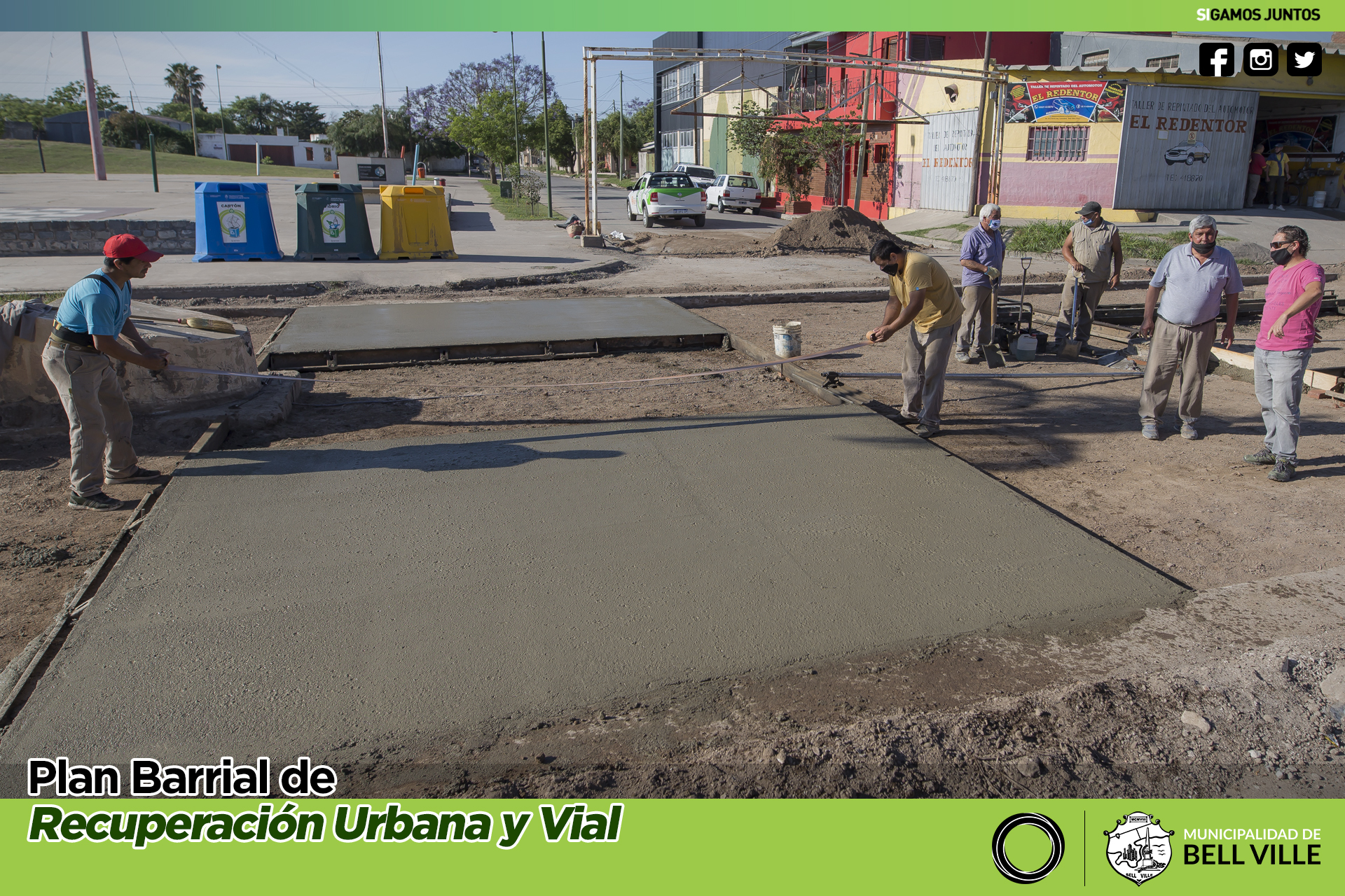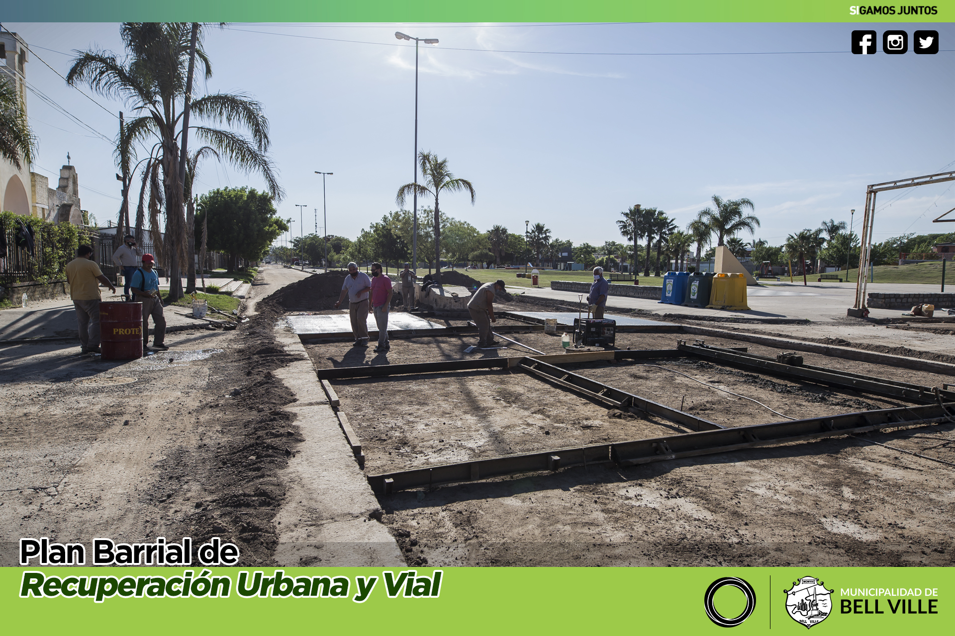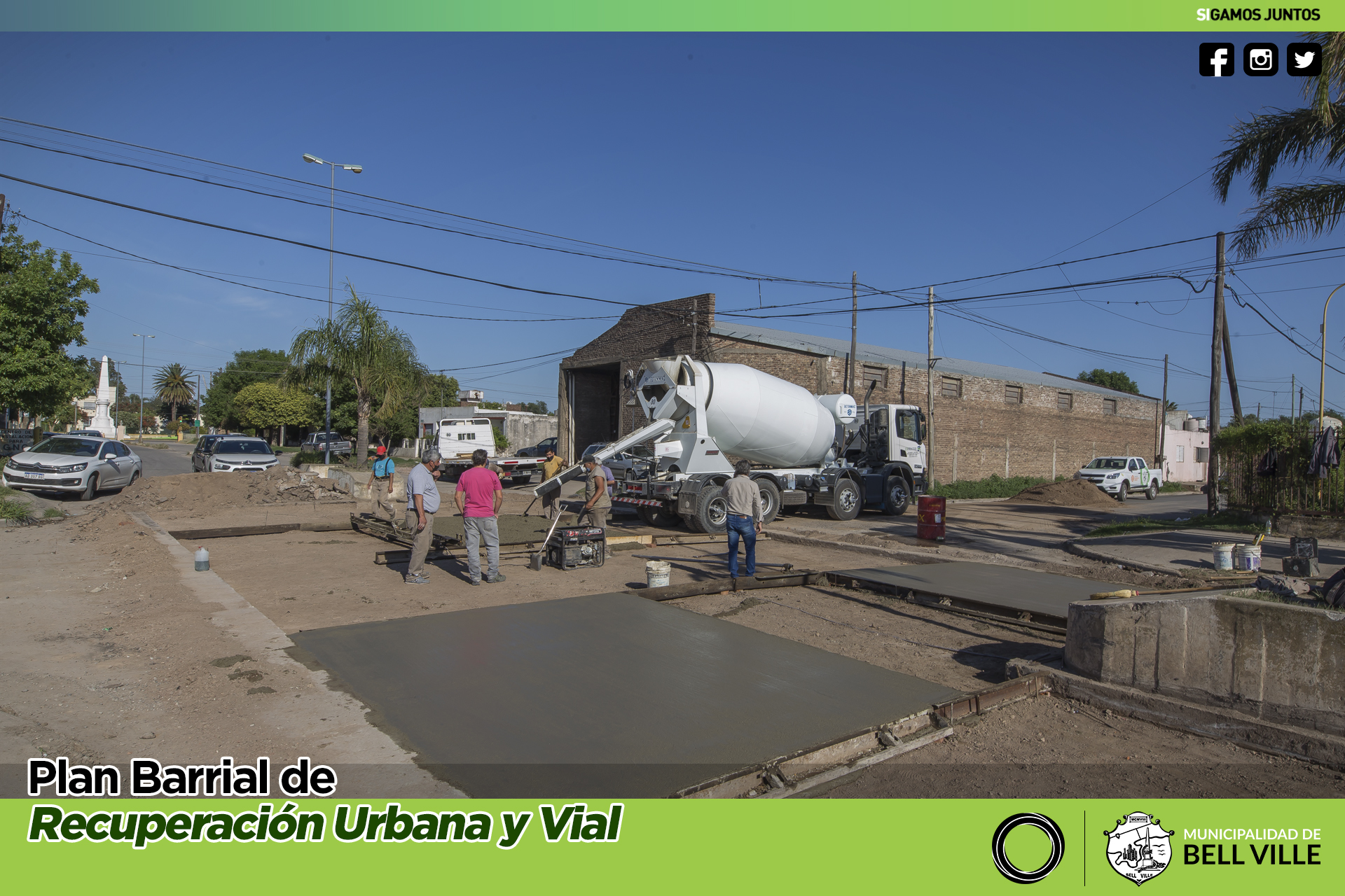 Esta mañana se inició el rellenado con hormigón de la bocacalle de bulevar Eva Perón y Lamadrid, luego de removerse el muy deteriorado asfalto existente en el sector.