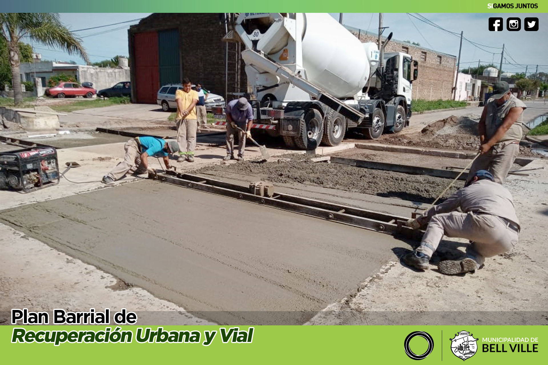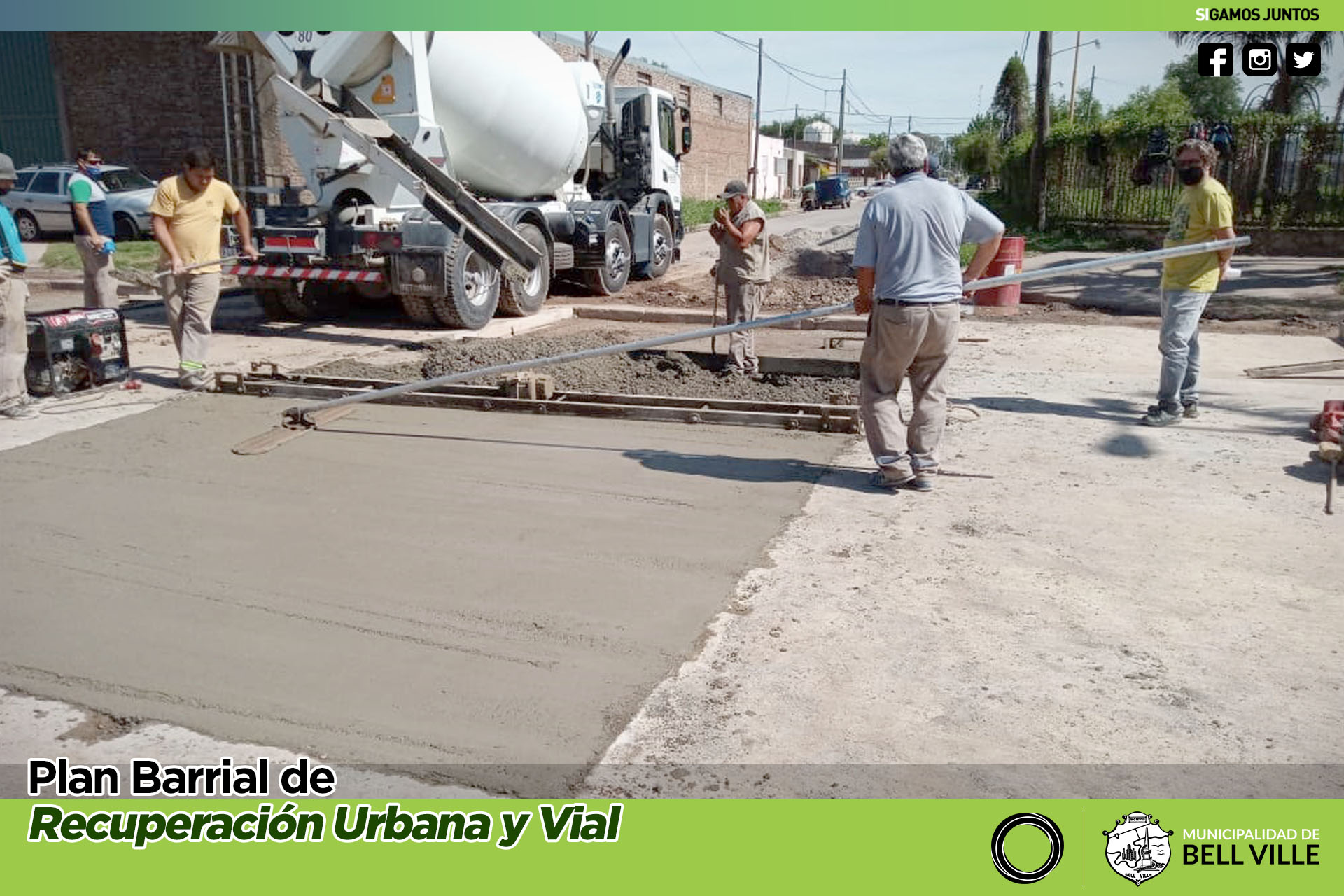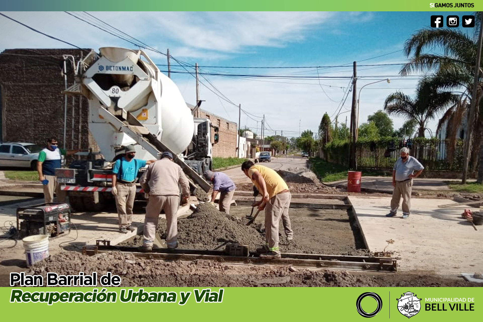 Por etapas y a fin de ir permitiendo el fraguado paulatino de los nuevos paños, se avanza en el rellenado con hormigón de la bocacalle de bulevar Eva Perón y calle Lamadrid.