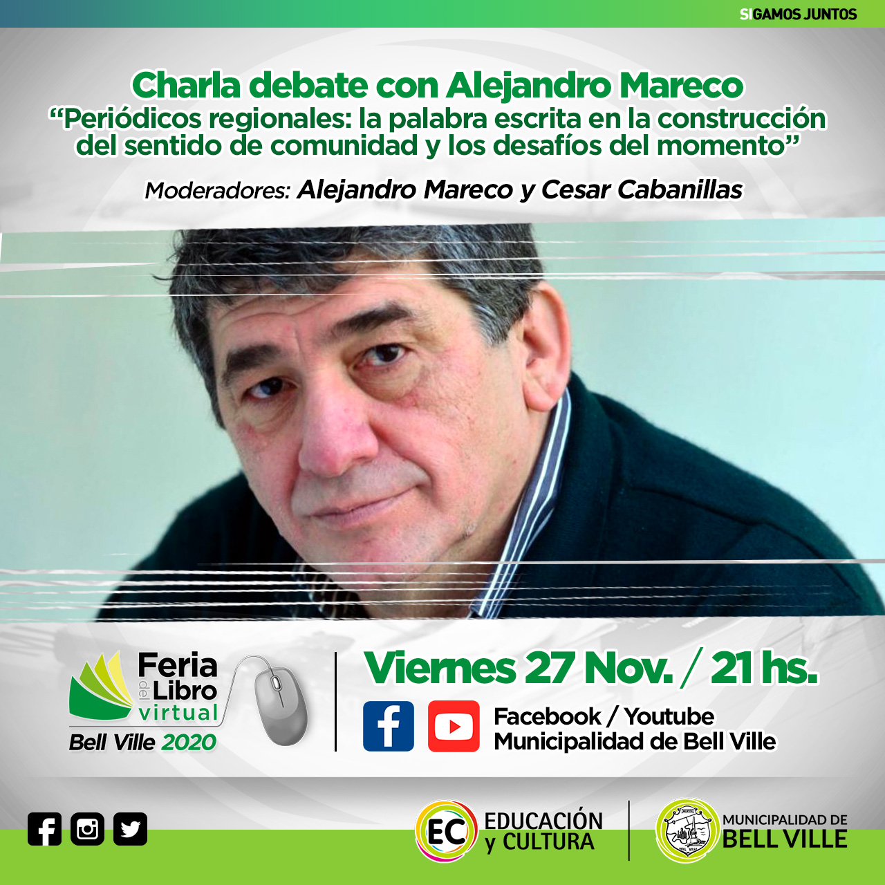 - “Detrás de los libros: conversando con Eduardo Sacheri” (Reconocido escritor argentino. Actualmente una de las opiniones más destacadas del ámbito literario y cultural del país.) (28-11-20: 20:00 hs.)