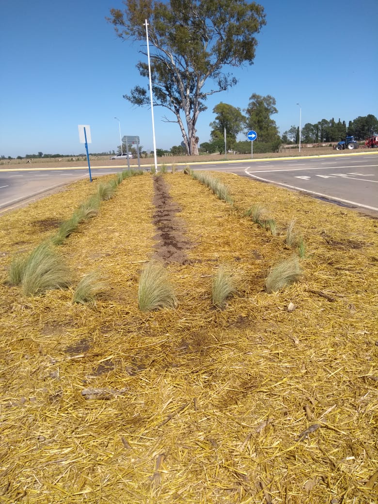 Con la plantación de más de un centenar de especies nativas, la Guardia Urbana avanza en el mejoramiento estético con trabajos de jardinería en rotonda y cantero central del acceso a la ciudad por el sector Oeste.
