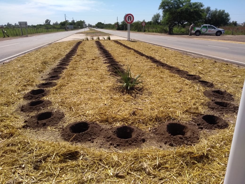Para ello se han plantado más de cien ejemplares donados por un productor agropecuario de la zona y se le incorporó una cubierta de forraje seco con el fin de preservar la humedad del suelo.