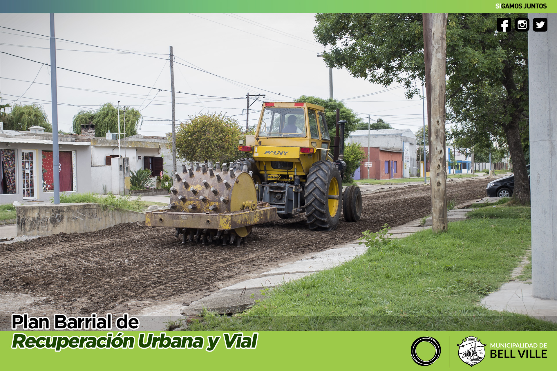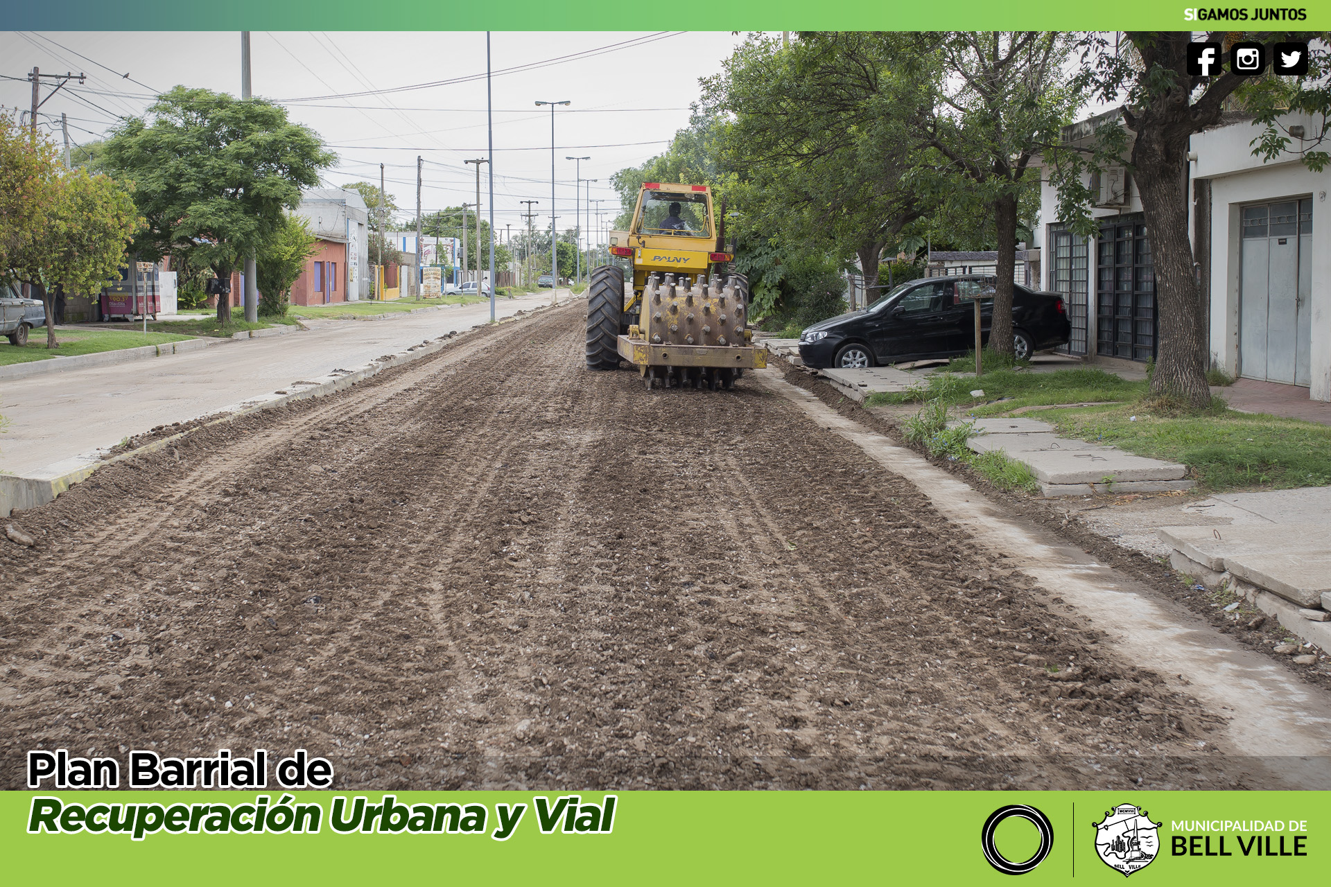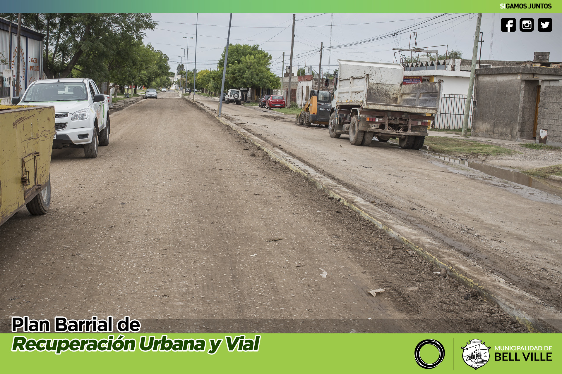 Maquinarias y personal del municipio trabajan en la consolidación de la base del sector de tierra del bulevar Eva Perón.