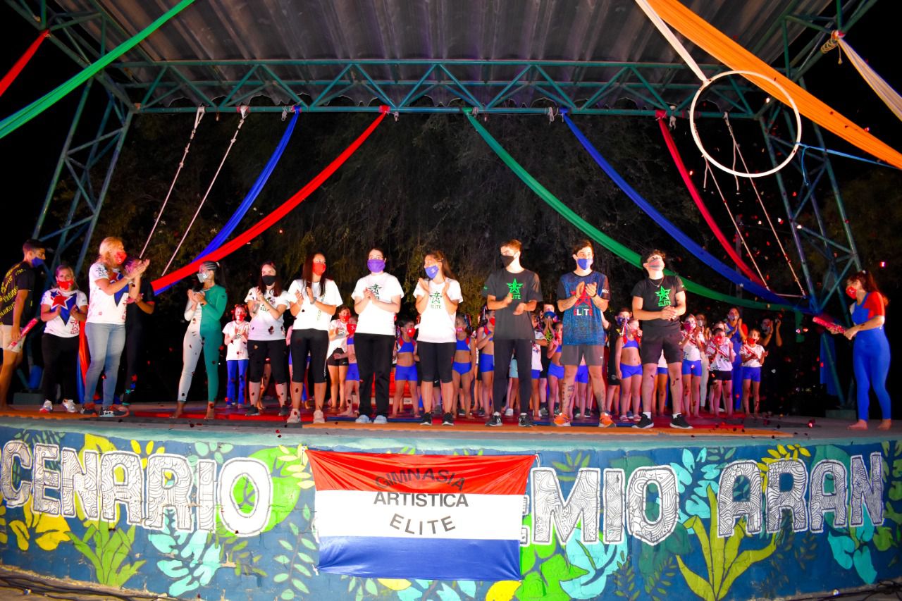 Sobre el escenario Artemio Arán en el empedrado del Parque Tau, se cumplió el espectáculo organizado por Gimnasio Elite y protagonizado íntegramente por sus alumnos.