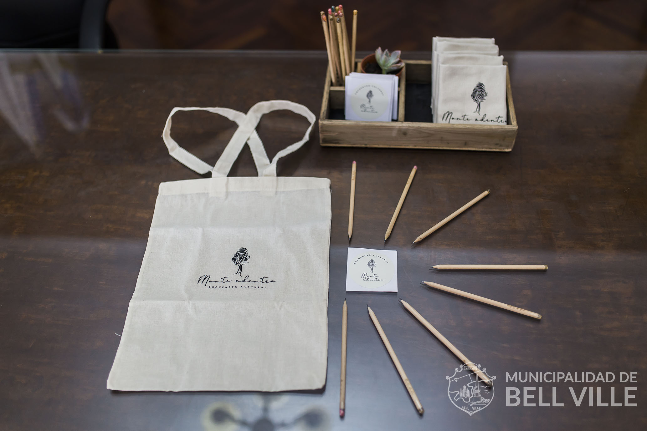 También como complemento al Encuentro Cultural Monte Adentro, exhibieron una serie de elementos que componen el merchandising con el fin de incentivar Monte Adentro. En todos los casos son productos amigables con el ambiente como bolsas ecológicas, calcomanías y lápices de madera “plantables” es decir con semillitas en una de sus puntas. Al respecto ya hay comercios que están comercializando estos productos.