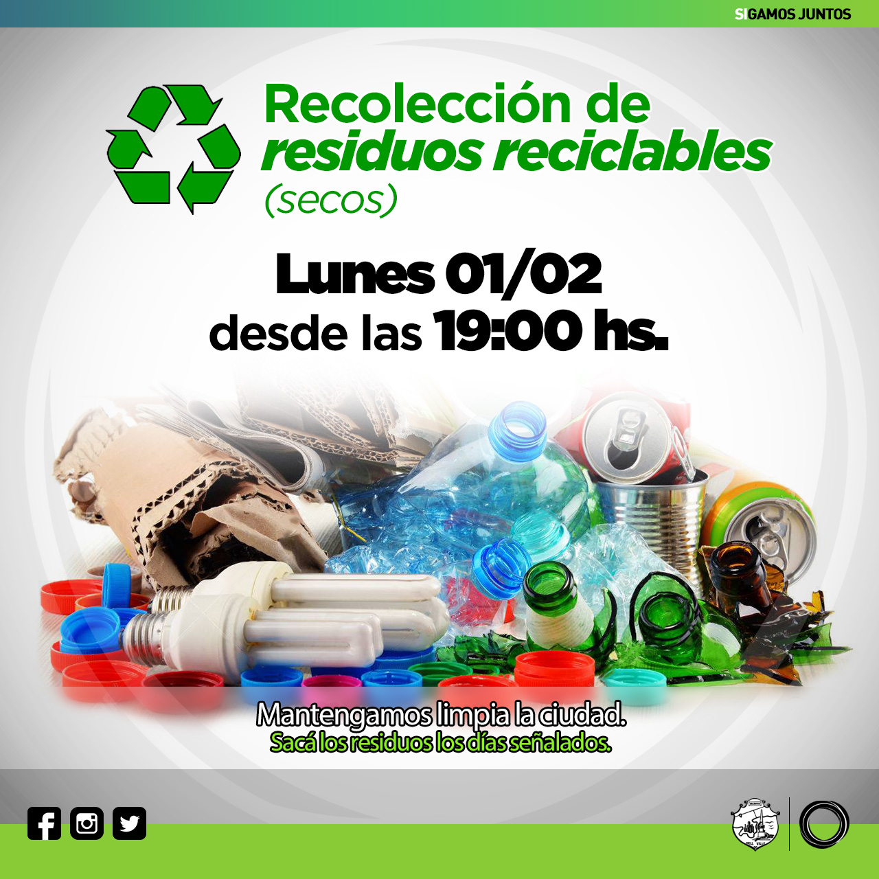 Como el primer y tercer lunes de cada mes, este 1 de febrero se cumplirá la recolección domiciliaria de residuos secos o reciclables.