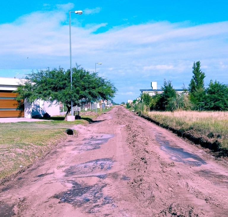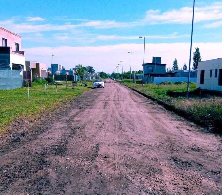 Maquinarias y personal del municipio trabajan en el nivelado de las calles en barrio Campos del Oeste.
