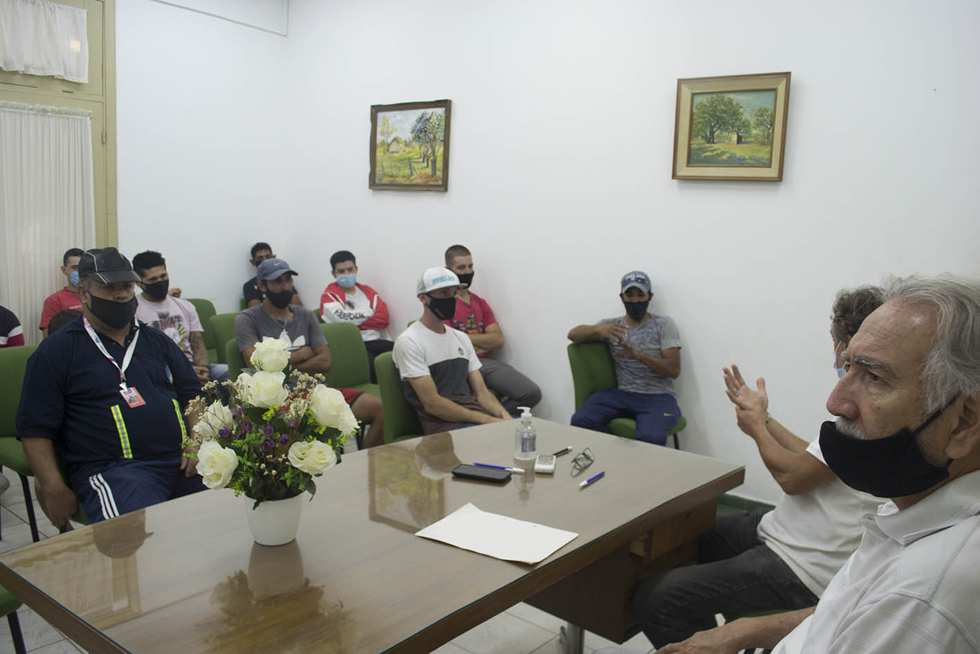Los Ing. Néstor Musso y Waldo Lanfranco del Área municipal de Seguridad e Higiene del trabajo, se reunieron con empleados del sector de Servicios Públicos de la Municipalidad.